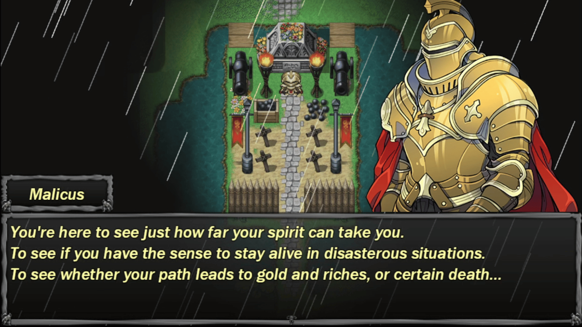 You're gonna get yourself killed out here... There's monsters, bandits, and much, much worse roaming these lands... Do you really think you've got what it takes to survive? Or do you think you're cut out for much more than that... There's only one way to find out, and time is of the essence!