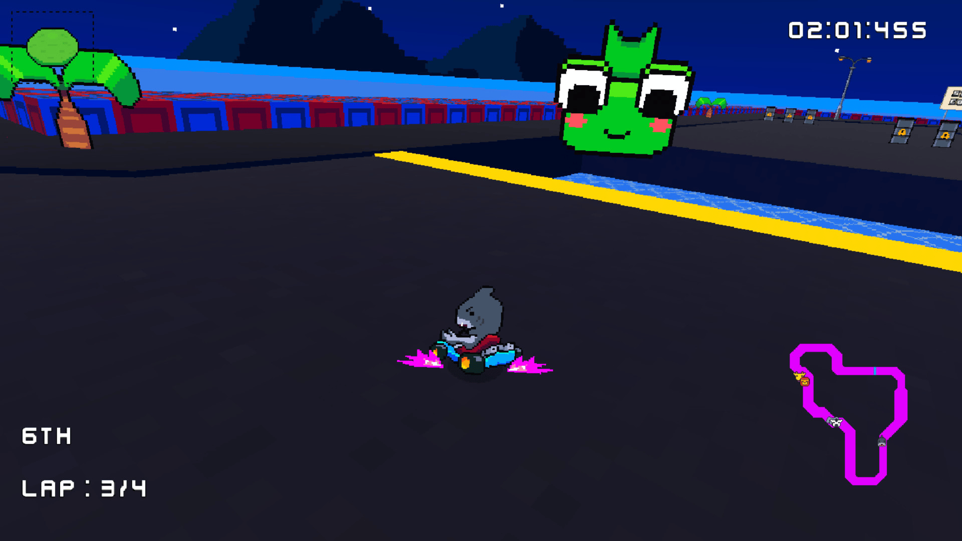 Retro Kart Rush is a retro racing game that will transport you back to the 16-bit era. Where friendships were made (or broken) by playing multiplayer games in front of the TV.
