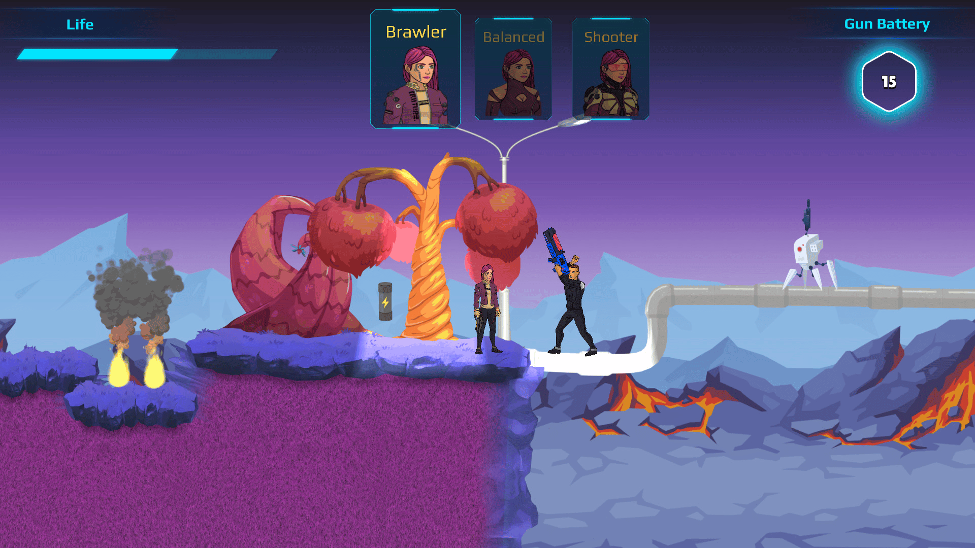 First instalment in the series of 2D action side-scrollers, taking place in very distant galaxy and not so distant future. Gameplay main hallmarks are fast-paced laser guns shootouts, punch 'n' kick combats, managing obby-like obstacles, using wits in overcoming deadly traps and witty dialogues.