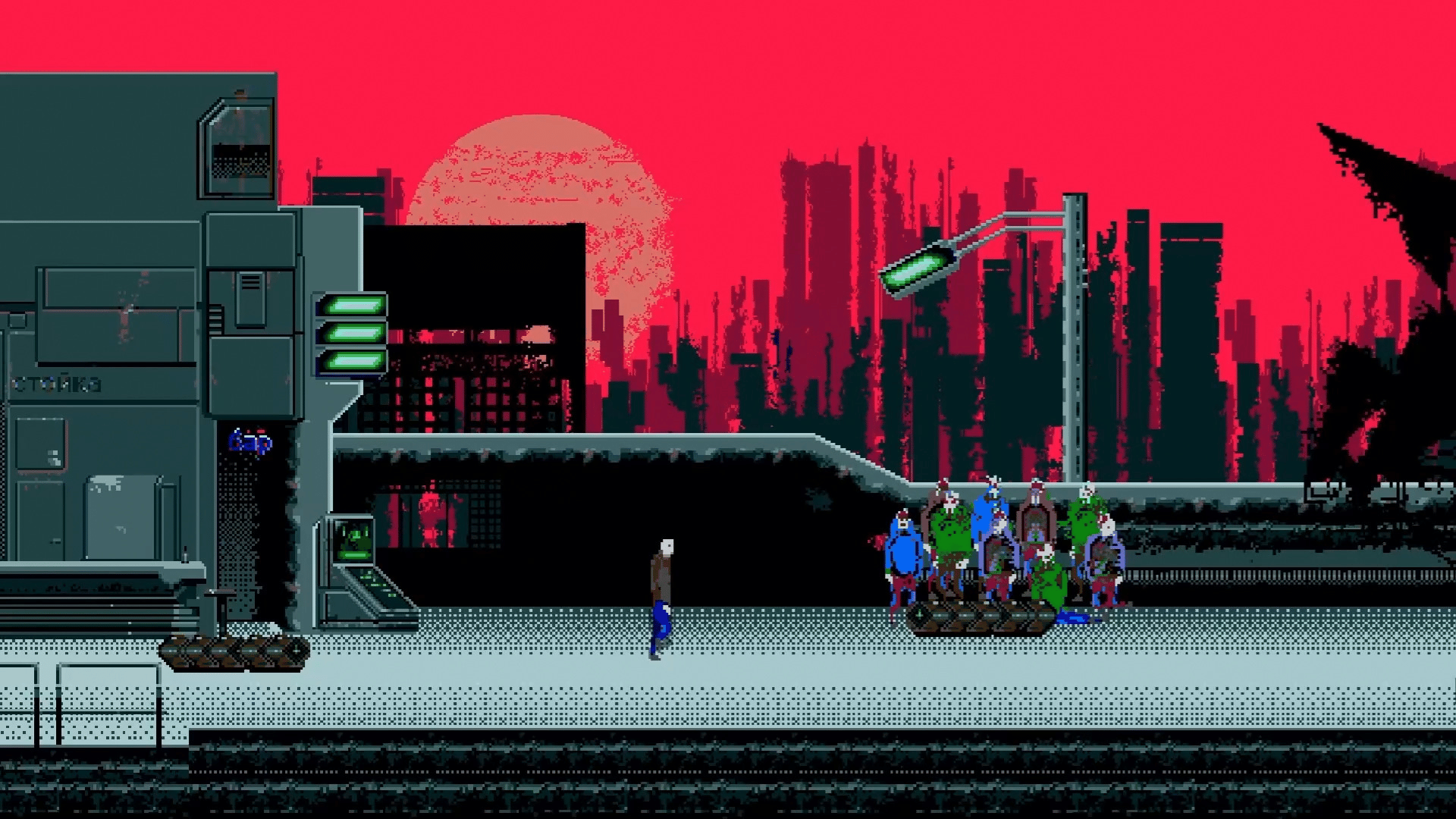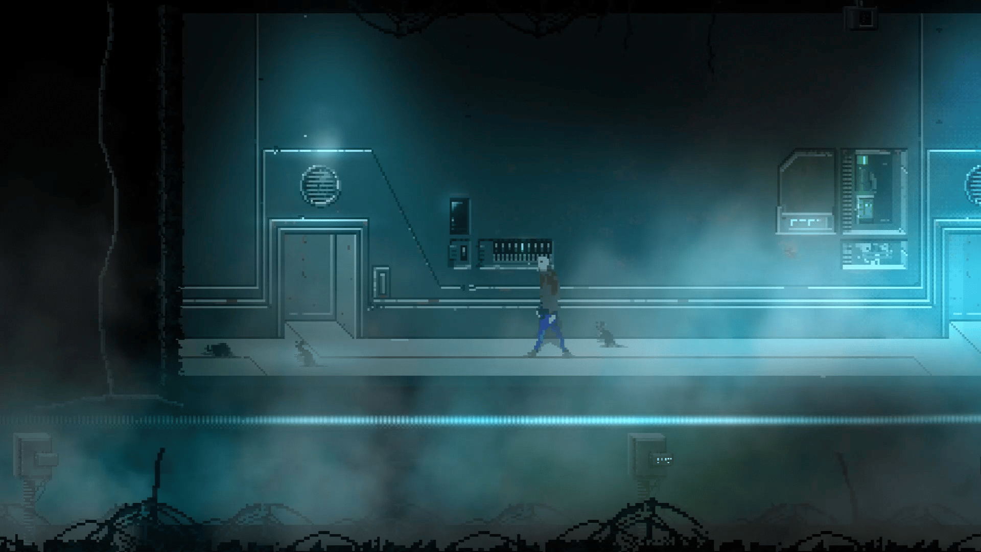 Hum is a dark 2D adventure game with stealth and horror elements set in the bleak, retro-futuristic world of Postapoland. You discover that you cannot die, forever trapped in a nightmarish reality. Explore the world in ever shifting perspectives, reach the reality engine and finally die.
