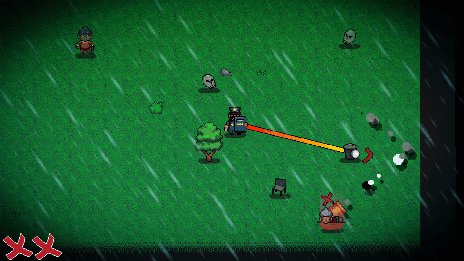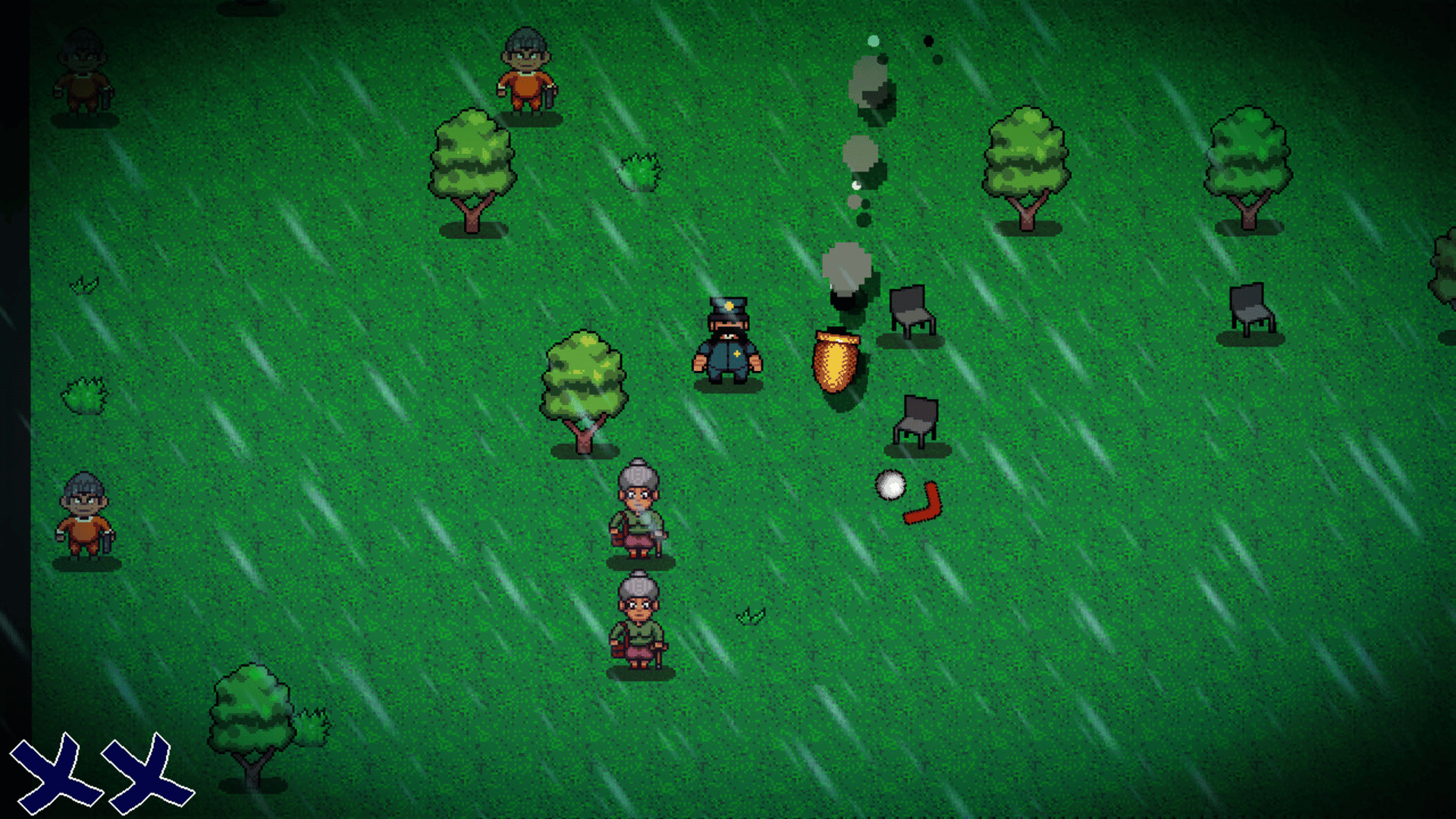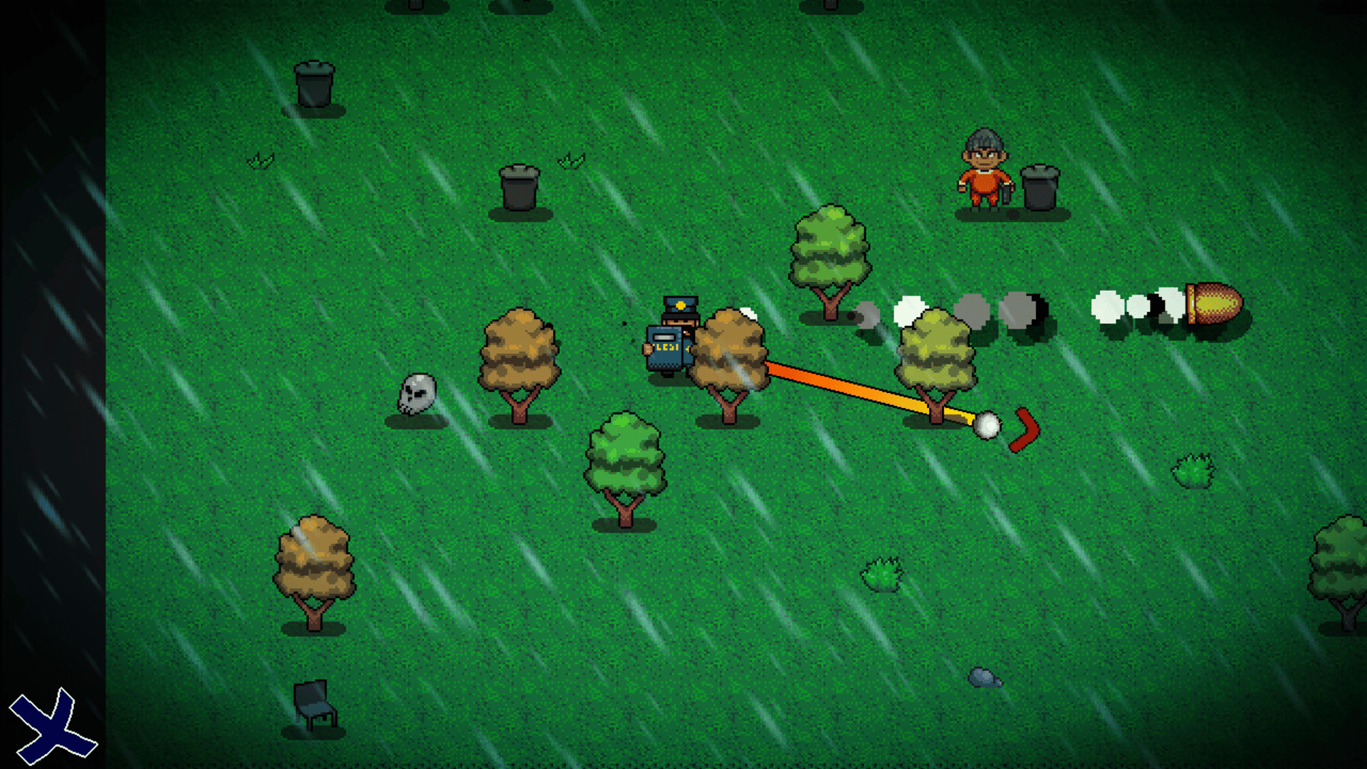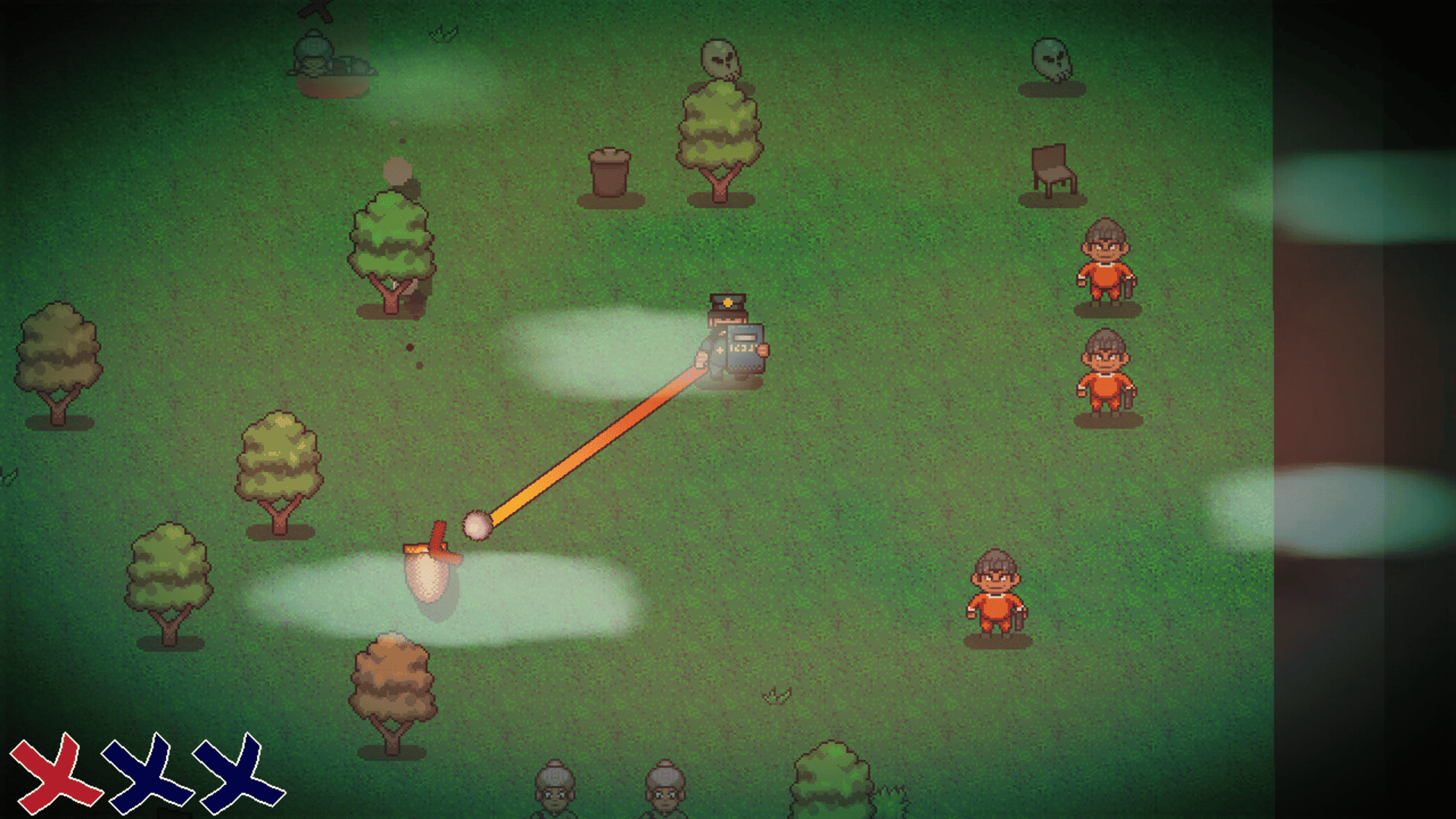 STOPOCOP - Top Down game where the player runs around the level and blocks with a shield, must reflect enemy bullets and direct them in the direction where the enemies are in order to destroy them, but without touching civilians.