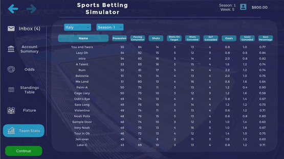 This is a sports betting simulation game. You have to make bets and earn money in order to achieve set goals and advance in your adventure.
