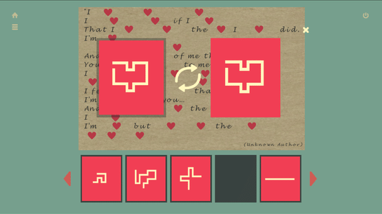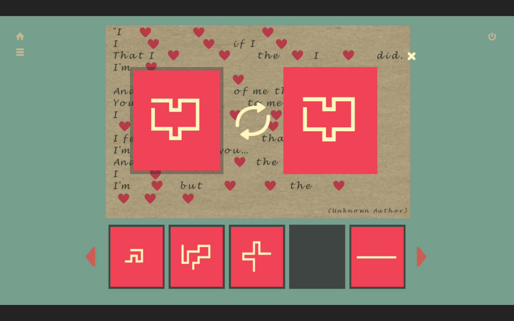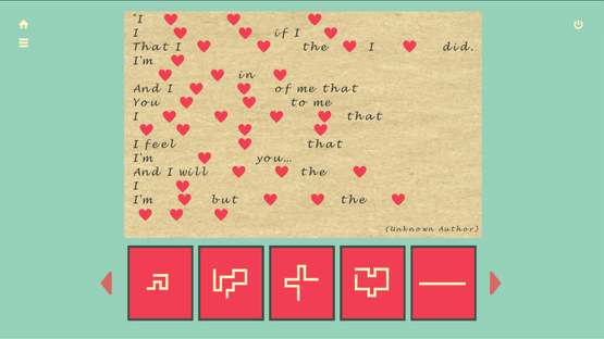 You have just received a coded love letter! In this minimalist puzzle, you will have to draw a single line to fill the entire board. At each level solved, get a code to reveal a piece of the letter. Gather the codes, read the letter and discover the message.