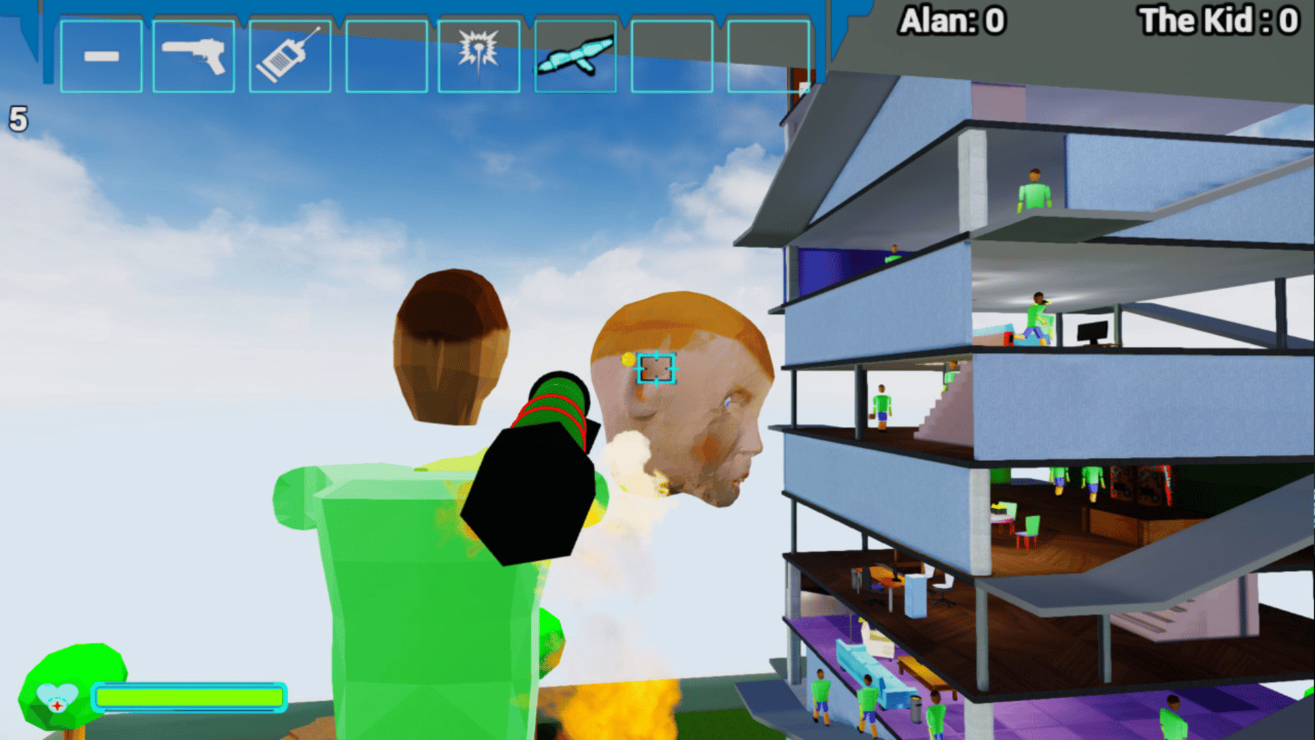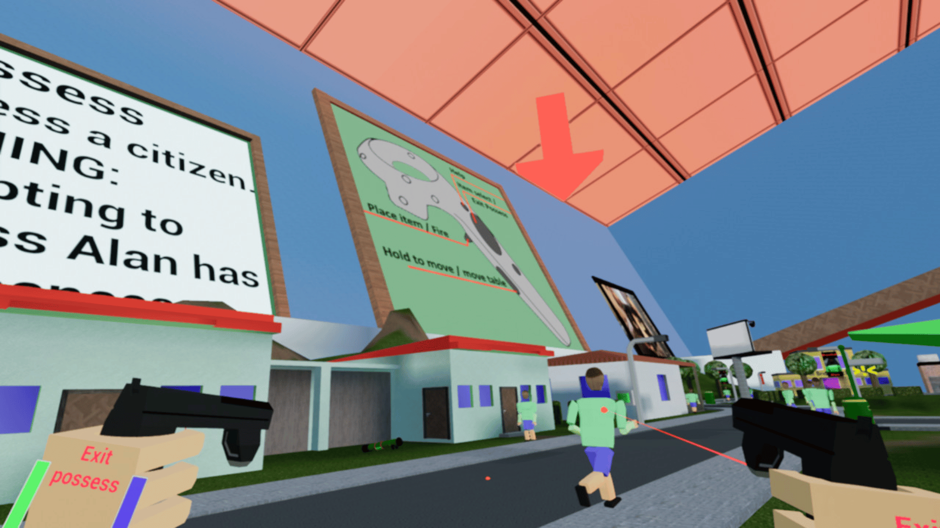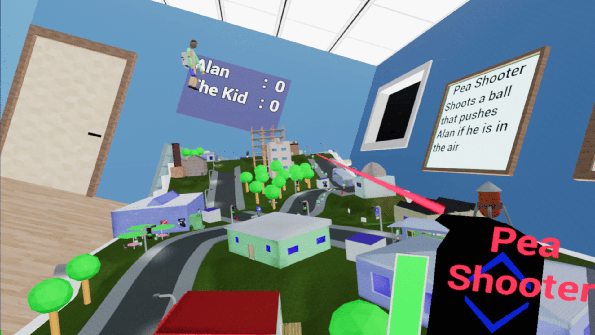 VR versus PC. Big VS Small ! Get the drop on your opponent using Guns, Rockets, Traps, Sleeper agents and a variety of other methods.Alan is a self-aware pawn on the Kids play table. Jetpacks, Oil slicks, smoke grenades, Table manipulation, Use every item at your disposal!