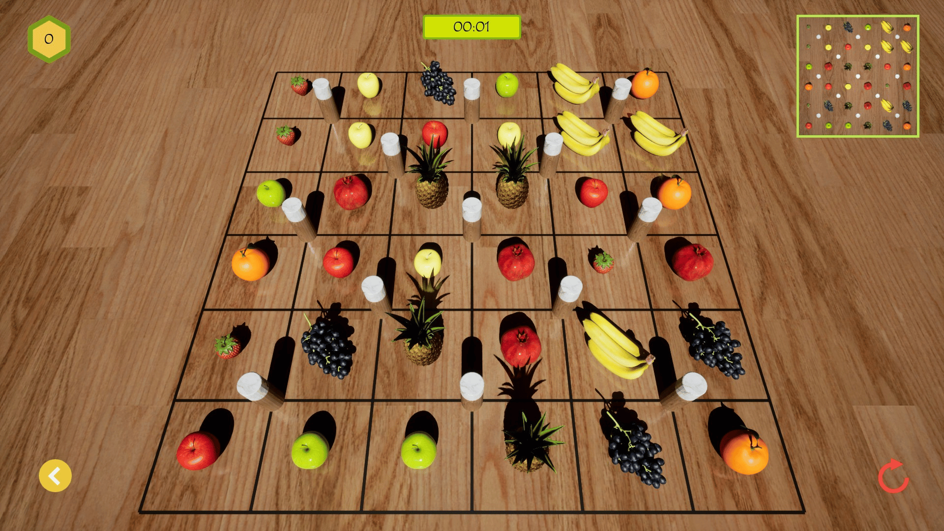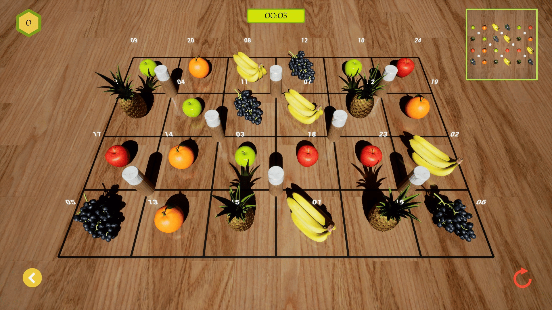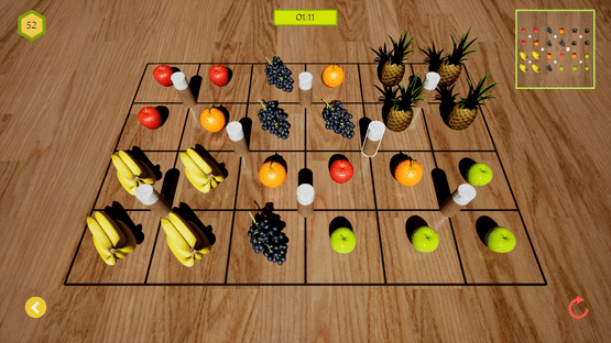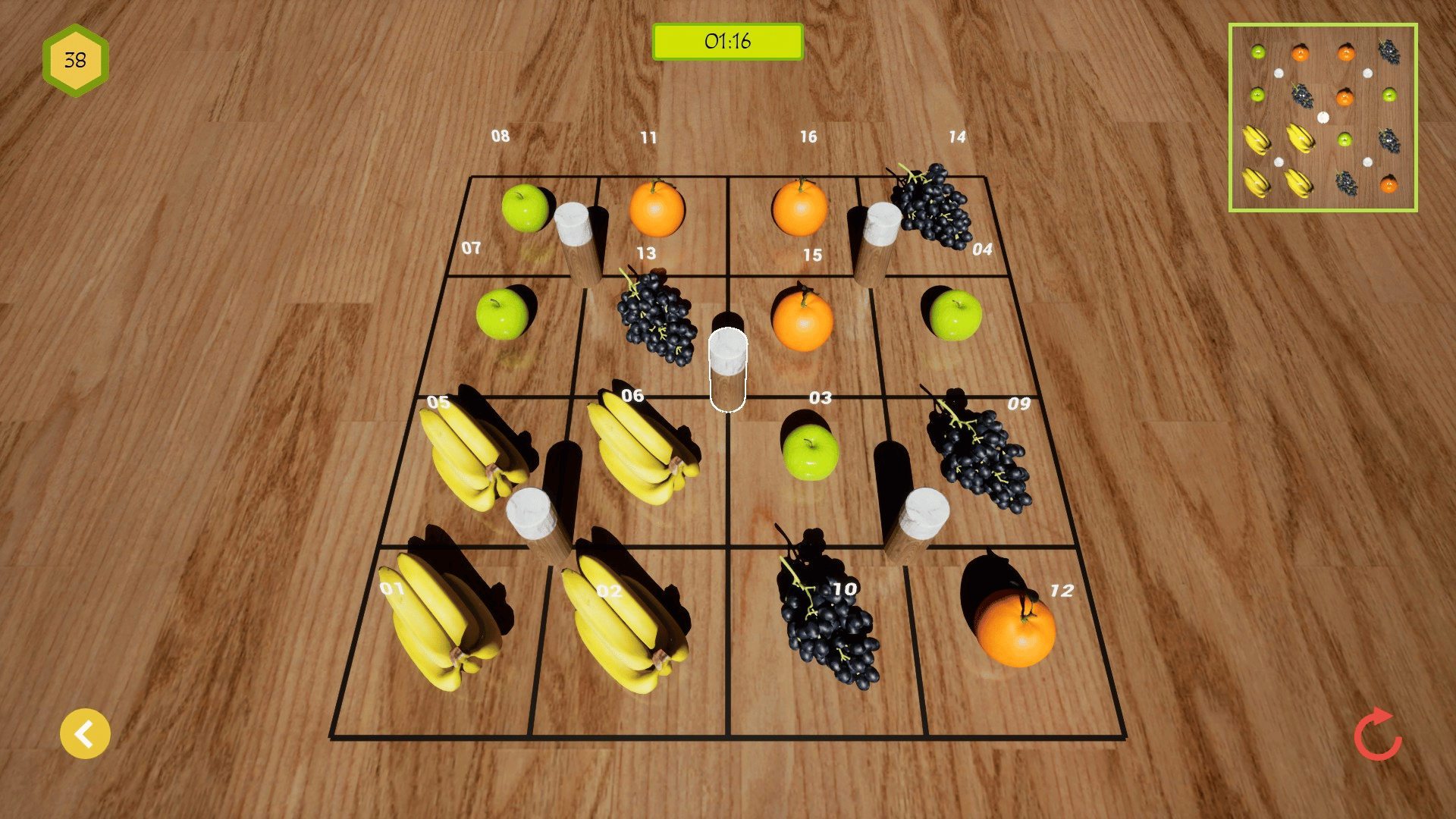 Sixteen is a small casual indie puzzle game similar to a vintage board-game from 1987. Organize the fruits into groups based of what type of fruit. Increased difficulty provides more fruits as well as a larger area to solve.