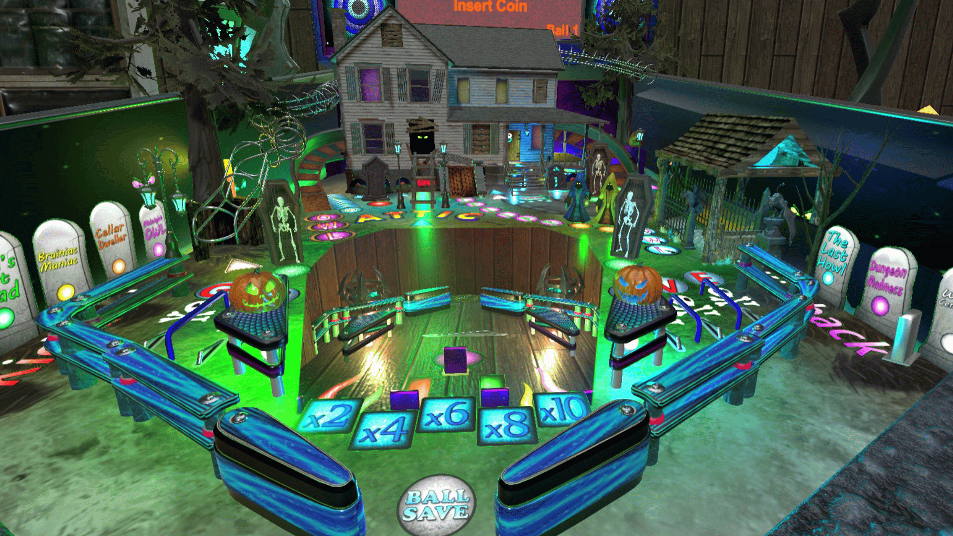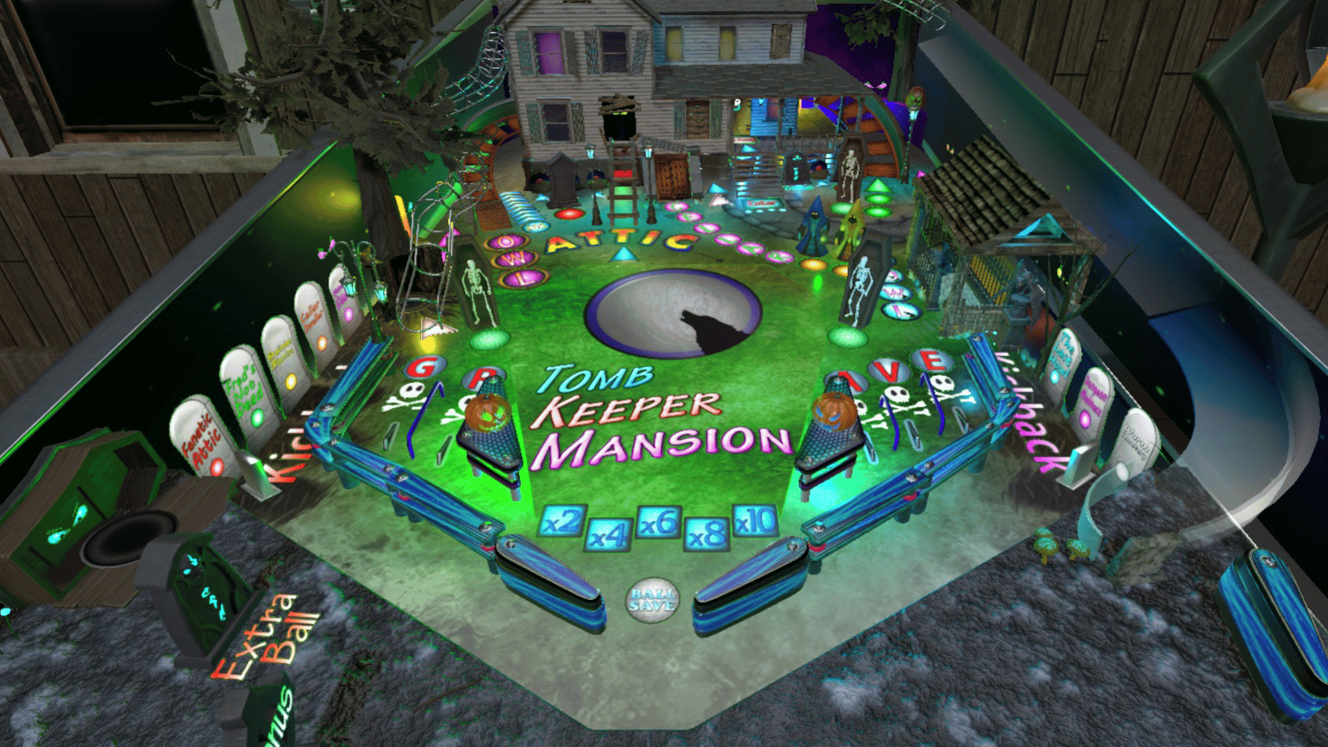 Tomb Keeper Mansion Deluxe Pinball features Tomb Keeper Mansion Pinball, Outergalactic Aliens Pinball, and Neon Nights Pinball. Tomb Keeper Mansion is a fast paced fantasy themed pinball table featuring 8 main missions and 9 side missions.