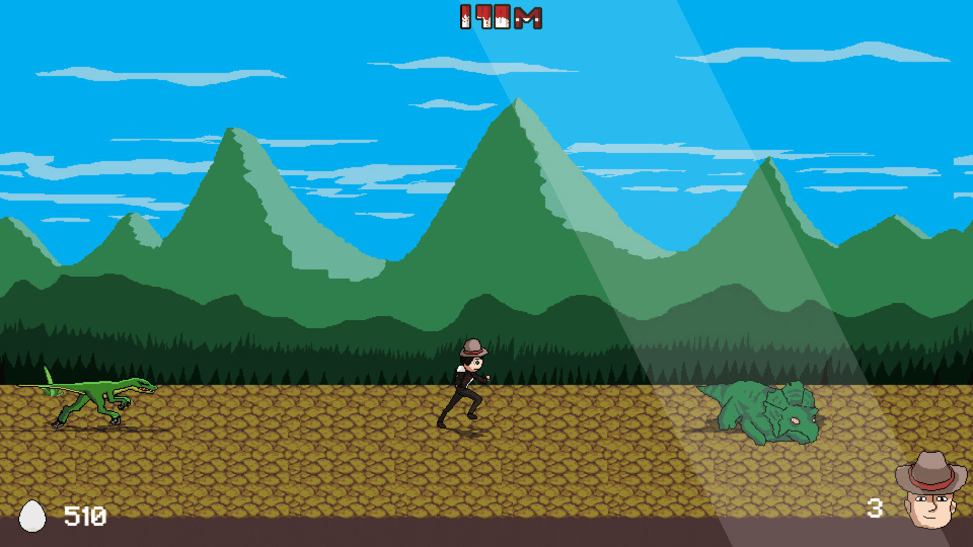 Dinosaur Race is a runner where you need to escape as far as possible from your dinosaur pursuer. After all, the evil mother does not want to part with her eggs. Earn points and use them to buy different weapons and auxiliary items in the store to facilitate this race for survival.