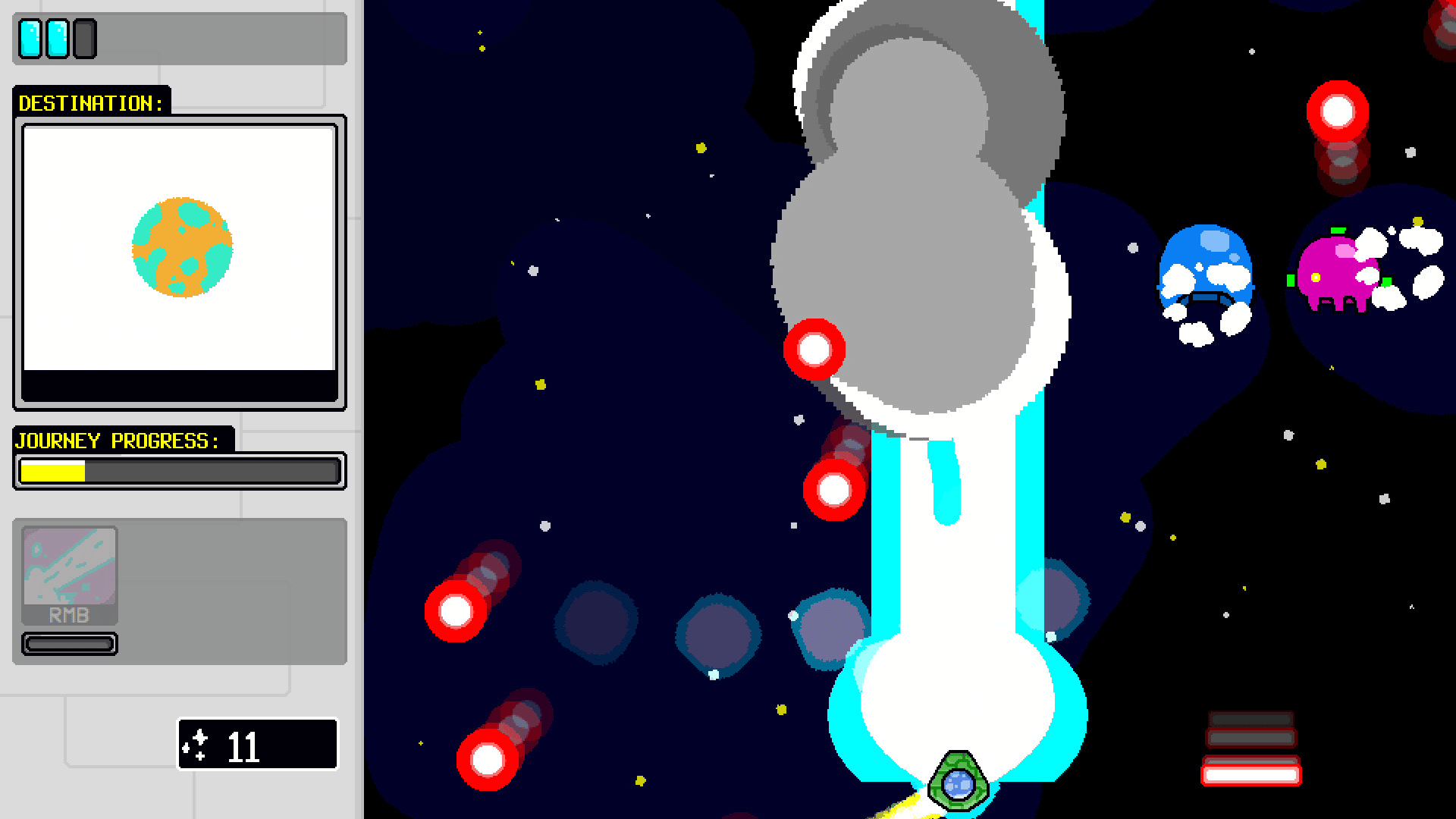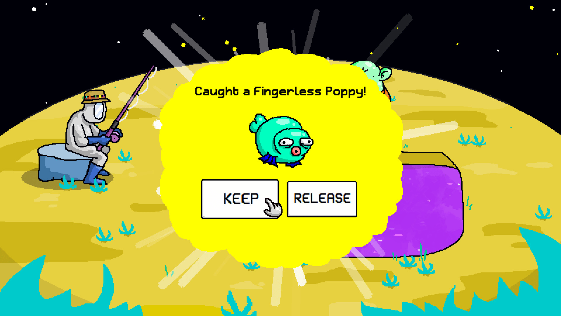 A cartoony mix of peaceful fishing and chaotic bullet hell action, with dozens of fish to collect and over twenty planets to discover! Explore a densely packed galaxy filled to the brim with charming characters and alien landscapes, and work your way toward uncovering Super Ick's dark truth.