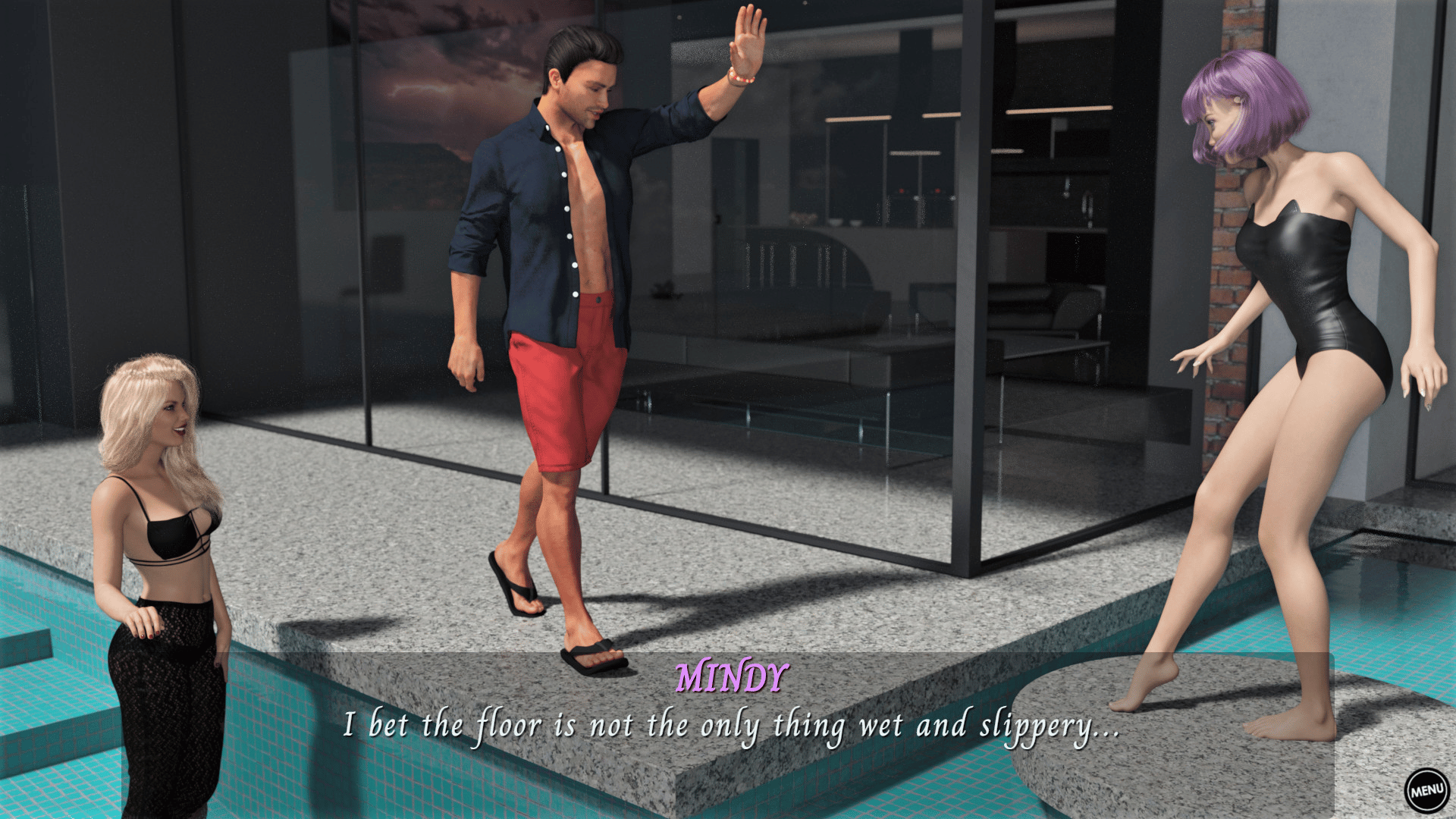 An explicit Click-Through VISUAL NOVEL about a newlywed couple sharing a very special first anniversary gift – her ex-girlfriend, Mindy.