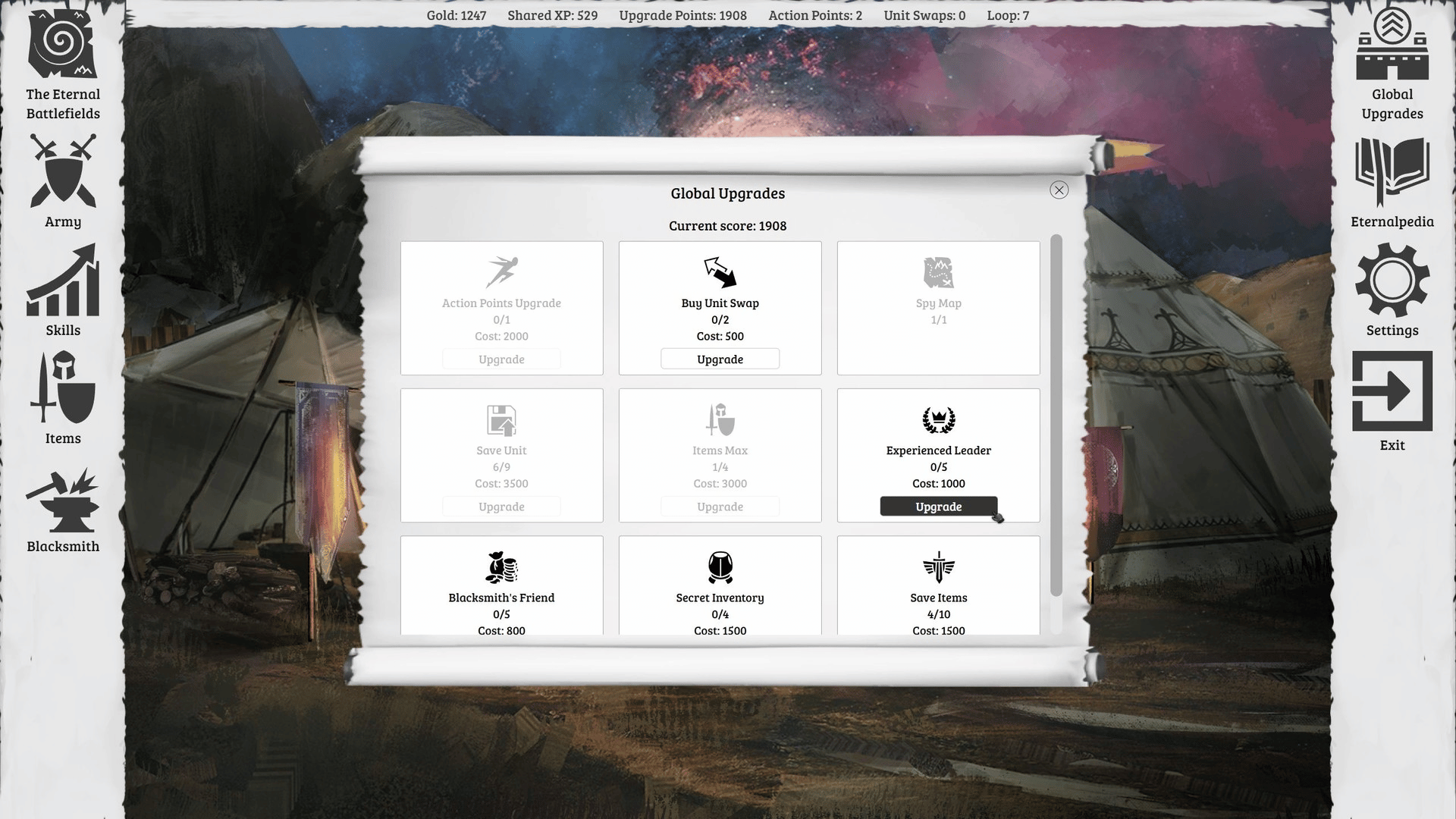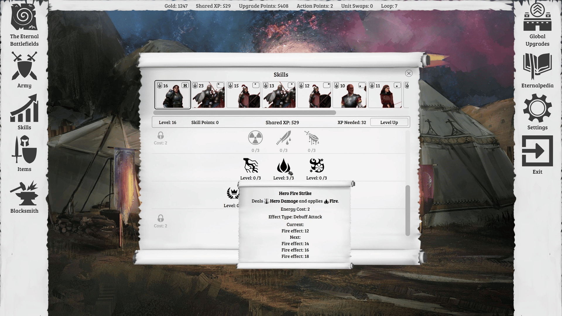The Eternal Battlefields is a turn-based tactical game with RPG elements and a loot system, emphasizing on battles. Get a random army in the High Score mode and try to reach the highest level of The Eternal Battlefields or try to beat the final boss in the Roguelike mode.
