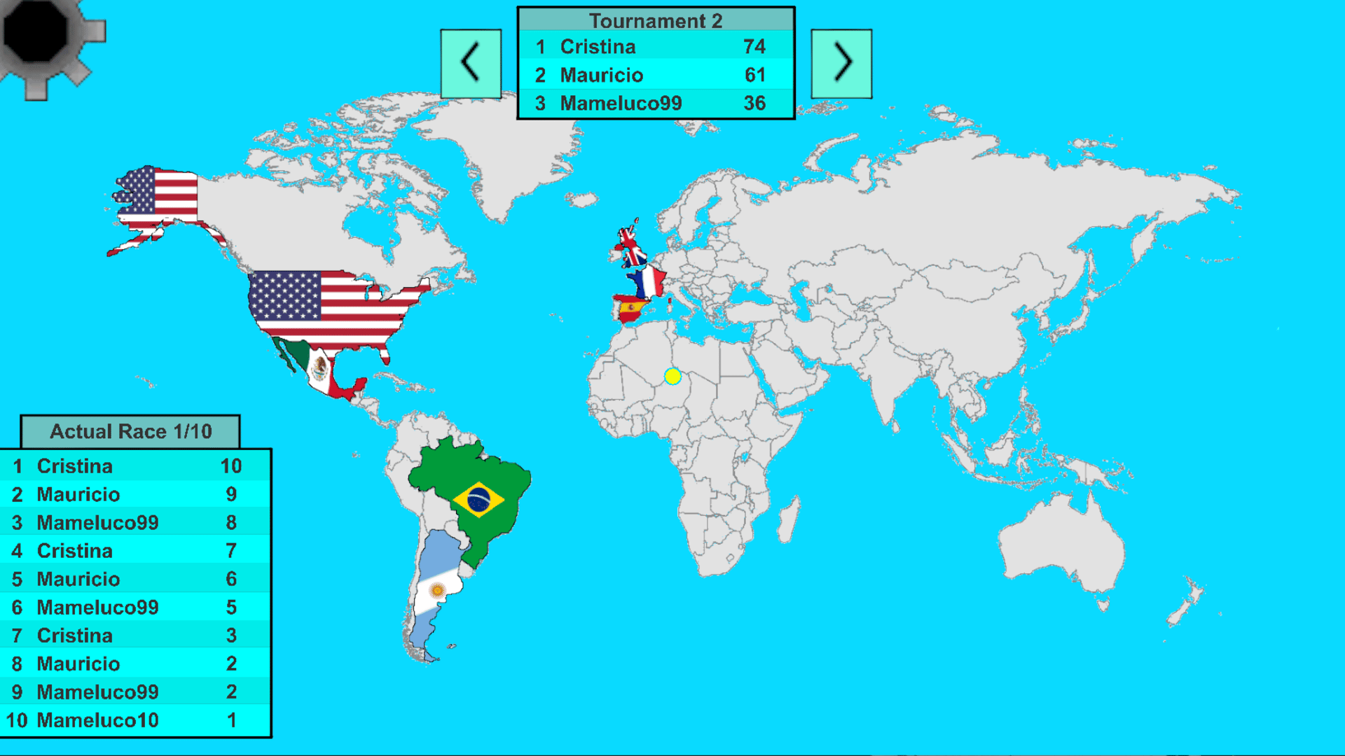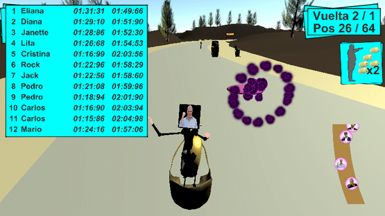 A game kart-like game which main goal is to beat the tournament for "the soberany of the world and take back the democracy credibility"... or so... at least to the one you choose to help within his/her own political race.