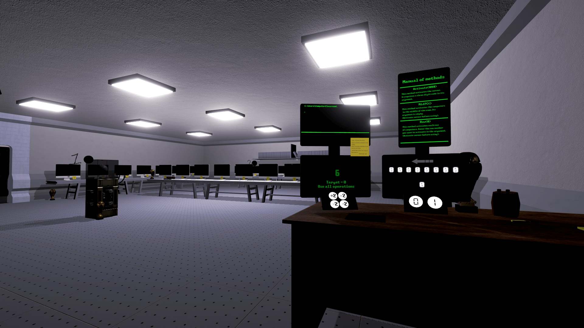 Class Escape is a puzzle game with five different rooms to discover and solve. Only by solving one room can you enter the next room. You will be going from the normal classroom to the lab to the theater. There are multiple puzzles in each room and their difficulty increases with each succeeding puzzle you solve. All the while, you will be constantly reminded by the instructor that you must be doing better than what you are. Can you handle the pressure? Work under a judgmental instructor that's watching every move you're making. The types of puzzles range from finding patterns, to manipulating numbers to find the correct solution, and connecting different ideas together to reach the correct answer.