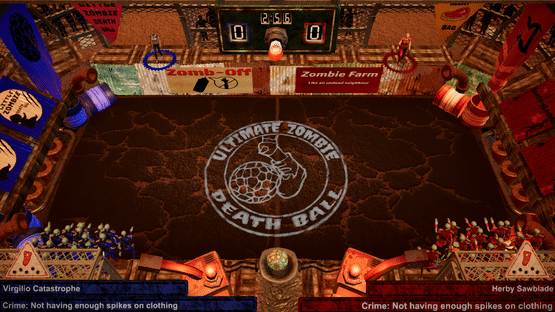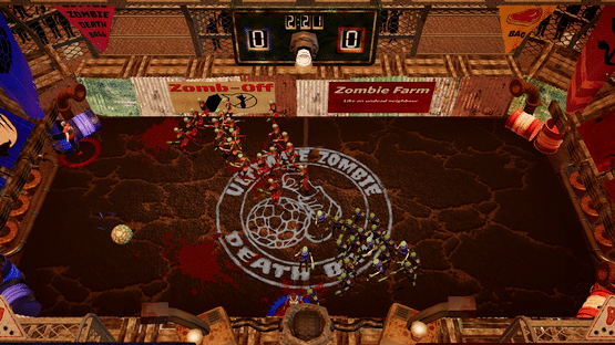 Ultimate Zombie Death Ball is a 1v1 arena sports game set in a zombie apocalypse. The object of the game is to get a ball in your opponent’s net, while being chased by a hoard of hungry zombies. Also, the ball is electrified, and will stun you if you kick it. Luckily, the zombies can kick it for you.