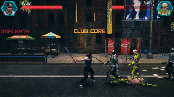 Fighting game with 8 stages, 6 characters with different fighting styles, lots of different weapons to use such as: baseball bats, knifes, axes, swords and guns and many opponents to fight.