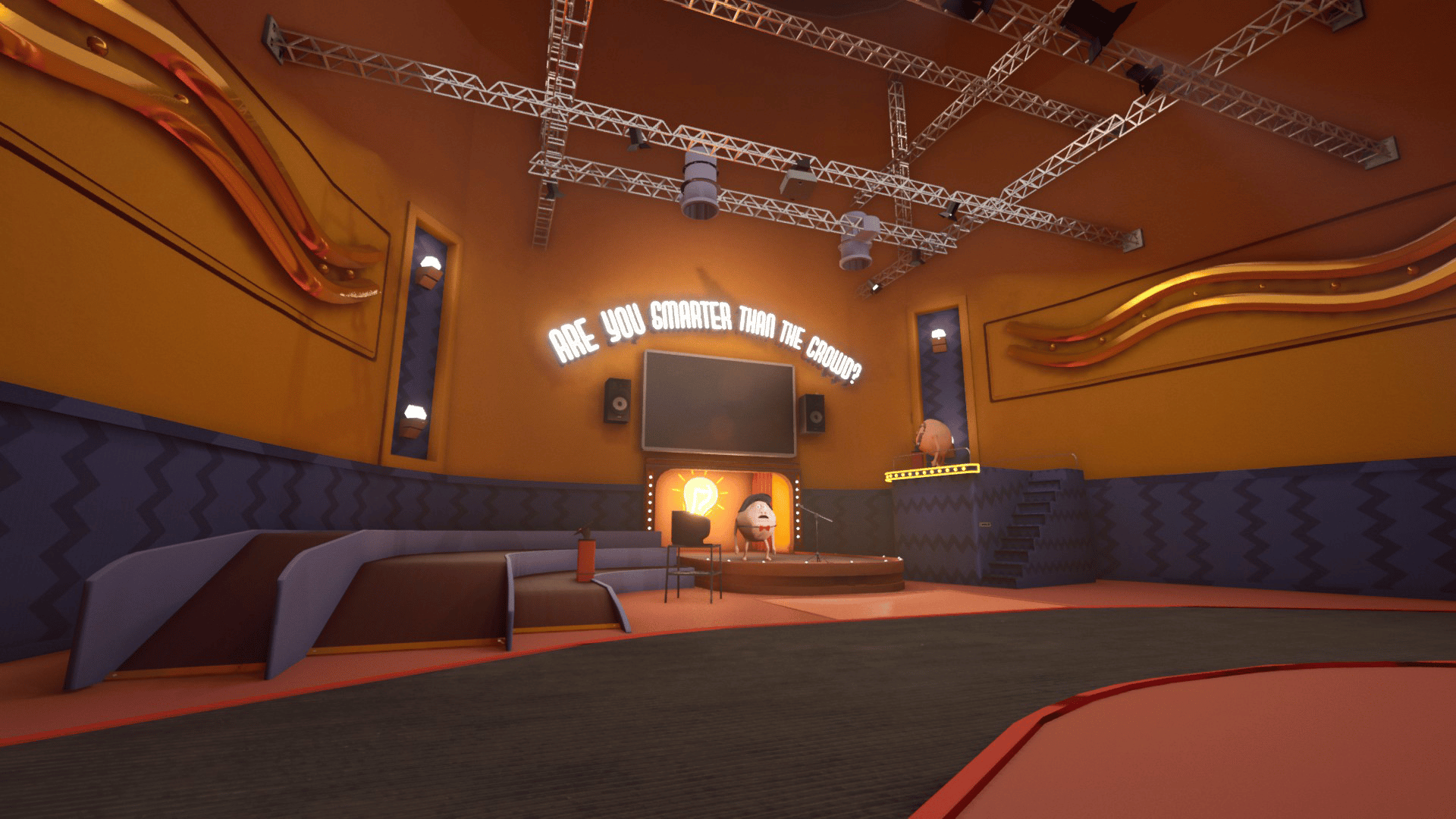 You think you're a smart little fella, huh? Well, come on down and prove it in the "Are You Smarter Than the Crowd?" -gameshow! Compete with or against the crowd in a fun I.Q game, hosted by our lovely host!