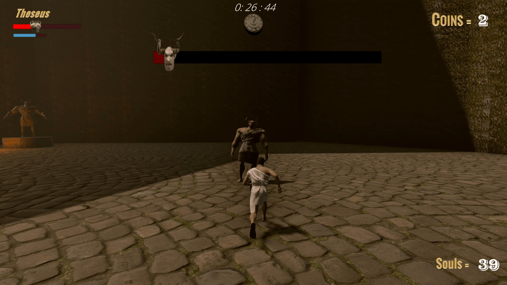 RPG with a complex maze, full of traps and some puzzles, where the hero must fight the furious minotaur. And also a battle against the god Chronos, to retrieve Athens' treasure and save the souls of his old friends. Where Princess Ariadne is his only help.