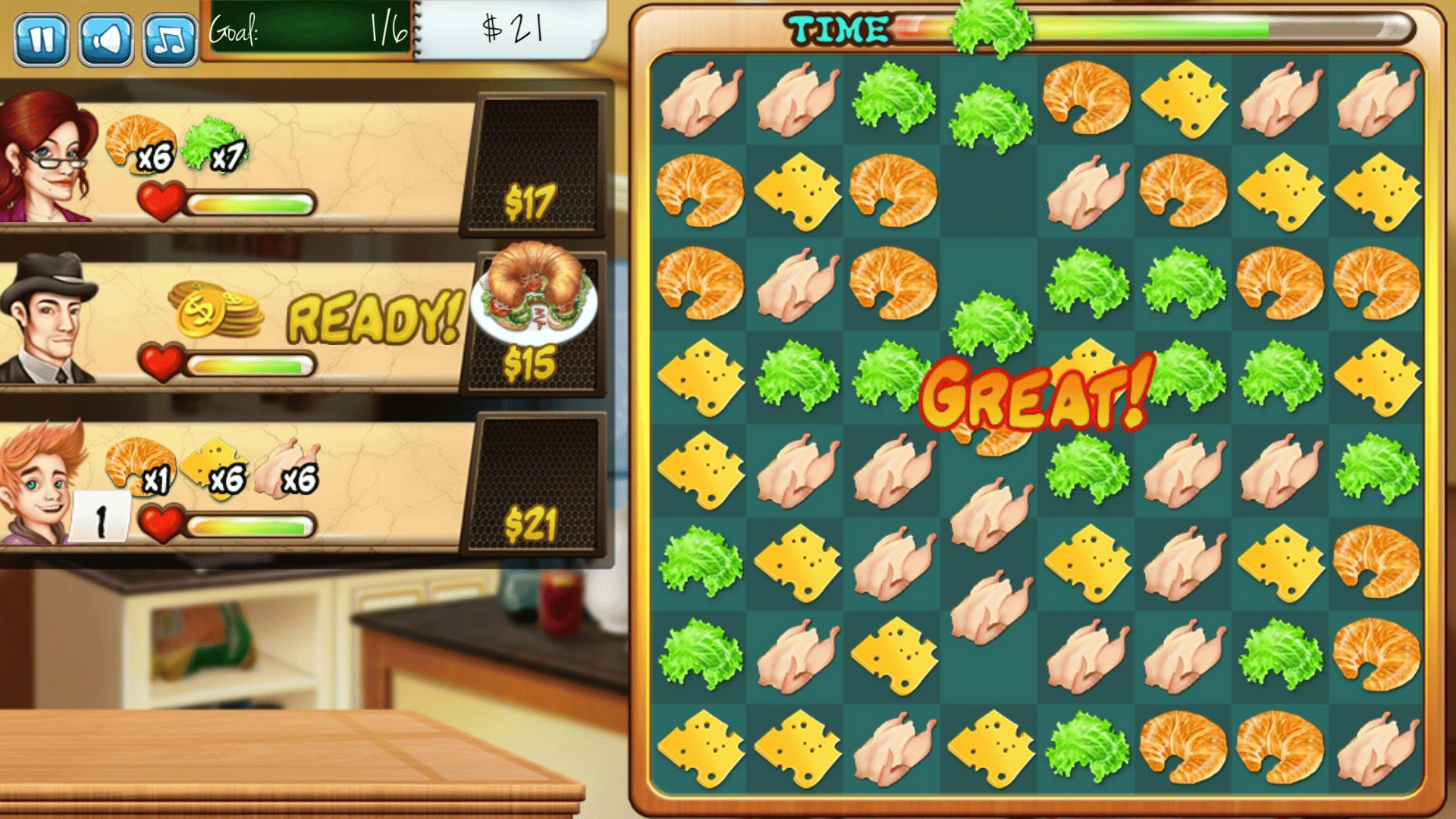 Rory just graduated from culinary school but she's too broke to pay for her school debt! Help her open a small restaurant and earn money to pay her debts! Play Rory's Restaurant: A unique Match3 and Cooking game! Enjoy familiar Match3 game mechanics in 70 challenging levels!