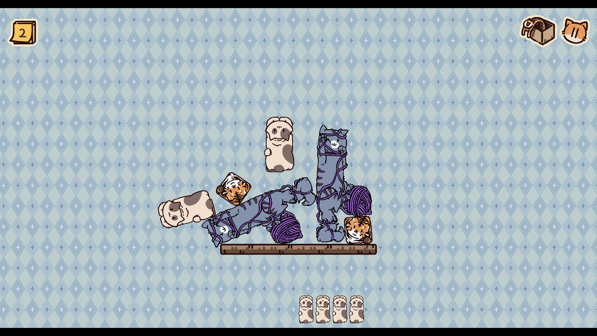 Box Cats Puzzle - The year of tigeris a small physics game. You need to stack multiple cats of different shapes on top of each other, so that you can pass the level by keeping them from falling for a certain period of time.