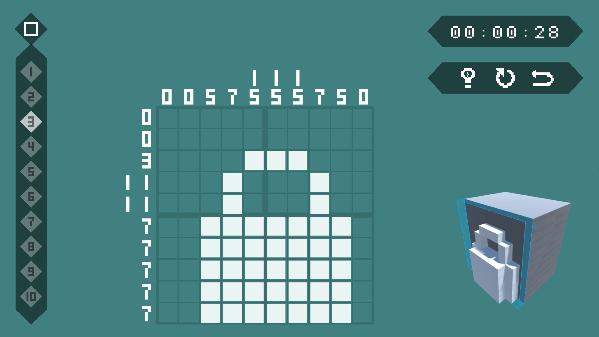 Voxel Digger is a logic puzzle puzzle game. Players need to fill the squares on the matrix to solve the puzzle. Players need to complete the puzzles of each layer to restore the original face of the 3D object, just like slowly carving a stone into a work of art.