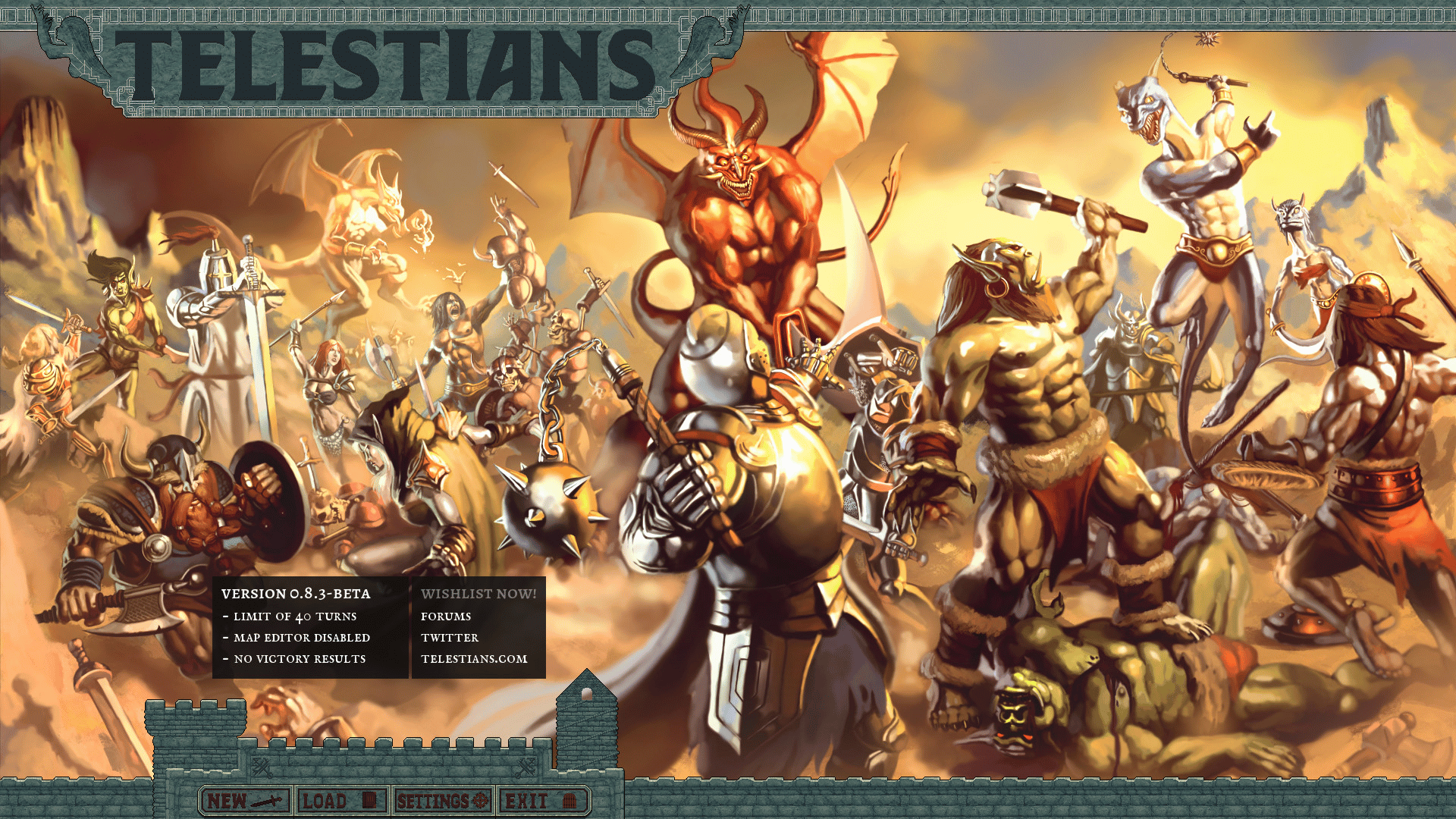Telestians is a turn-based strategy war game that takes place in a dark fantasy setting. Build armies, search ruins, conquer enemies, and hear the lamentations of their women!