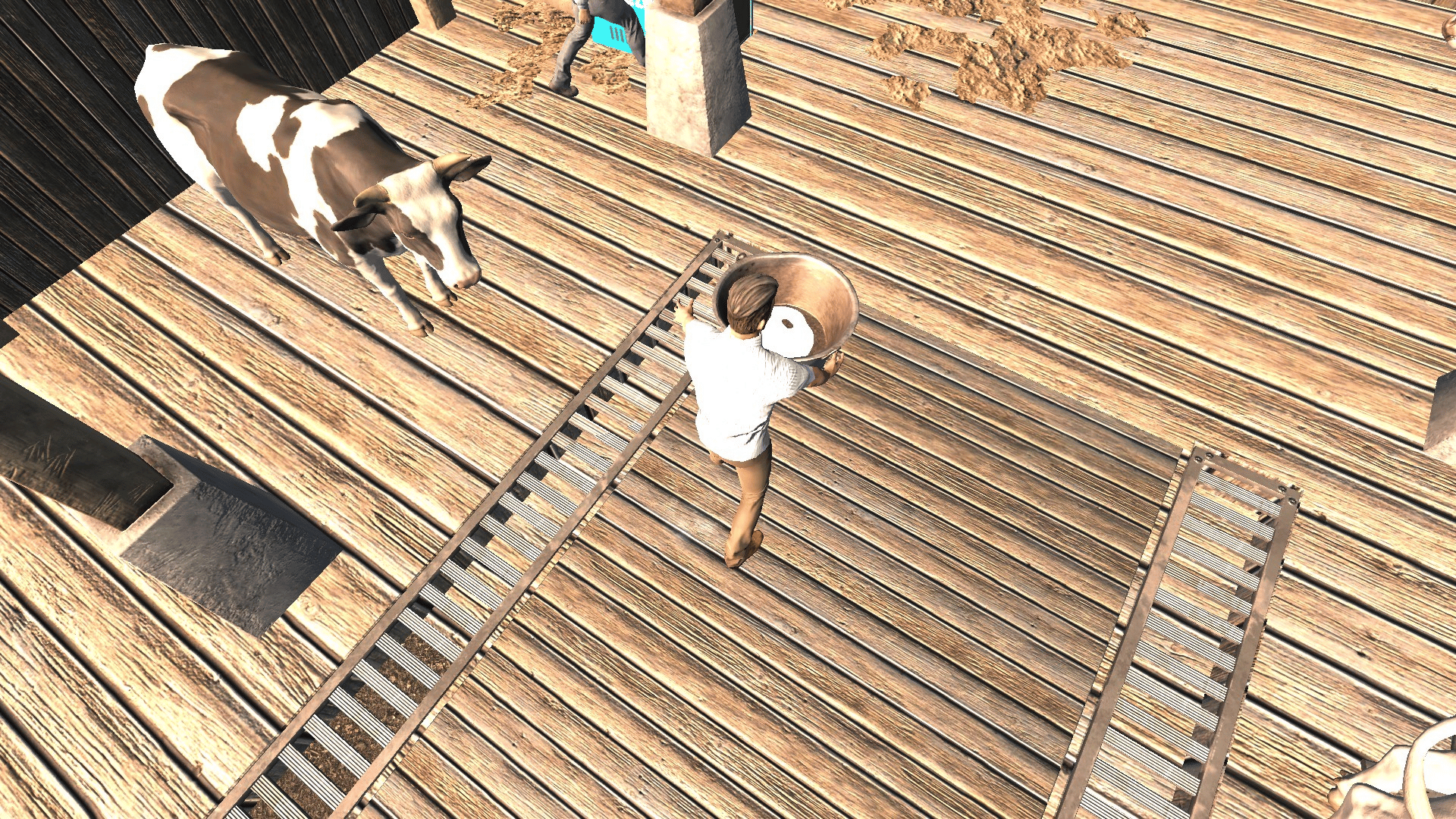 The main character comes to work part-time at a ranch and takes care of 16 Holstein cows and their calves. He has to chase the cows with his dog, milk the cows, feed them, and carry the milk in buckets slowly without spilling. You can also take a car to explore and talk to the villagers.