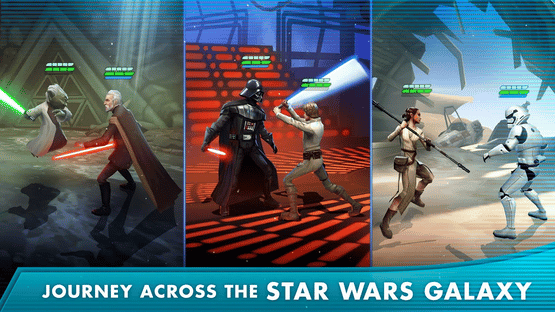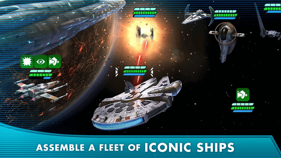 Live your Star Wars dreams as you fight with your favorite dark and light side heroes across iconic locations to become master of the galaxy. Create and customize your dream squad using characters from every era, including new characters from Star Wars: The Force Awakens and Rogue One: A Star Wars Story. Engage in epic turn-based battles, confront giant bosses, progress your characters, and take your experience to the next level! CREATE THE ULTIMATE TEAM Rebel leaders? Empire stalwarts? It’s your choice as you construct elite light and dark side teams while collecting heroes and other characters from the Star Wars universe. Make key strategic moves and pick teammates with complementary abilities to go to war with unbeatable squads! BECOME MASTER OF THE GALAXY Defeat opponents and rise to the top as you dominate the galactic hologames in a far-off cantina. Upgrade your heroes’ abilities as you play for even more powerful attacks and bigger wins. Then fight other players in Squad Cantina Battles, PvP Squad Arena, and Squad Tournaments to achieve greatness. PLAY WITH POWERFUL CHAMPIONS Make smart, tactical decisions and equip your heroes with the ultimate gear to enhance their damage in galactic war. Unlock fun abilities to make your team unstoppable as you unleash commanding moves like Luke Skywalker’s Bullseye, Jedi Knight Anakin’s Reckless Assault, and others. ENGAGE IN EPIC SHIP BATTLES Collect iconic starships and massive Capital Ships to construct your war fleets. Attack all-new challenges, fight through space, and compete in the Fleet Arena to test your prowess. Gather unique upgrade materials for characters, available only as rewards for Ship battles. Each vessel also has its own crew, adding special powers to individual Ships. Recruit powerful characters to create the strongest armada! RISE TO THE TOP IN GUILDS Lead Raids with friends and fight against bosses like the Rancor and AAT Tank when you create a customizable Guild. Collaborate with your Guild in Territory Battles where members unleash their entire arsenal of characters and ships against a progressively evolving battlefield. Show your dominance when you face off against other Guilds to conquer territories and top global leaderboards in Territory War.