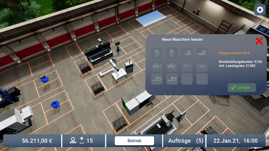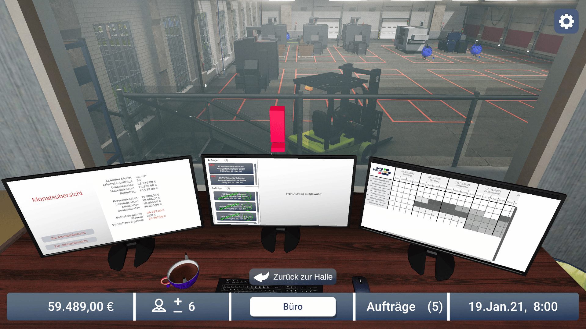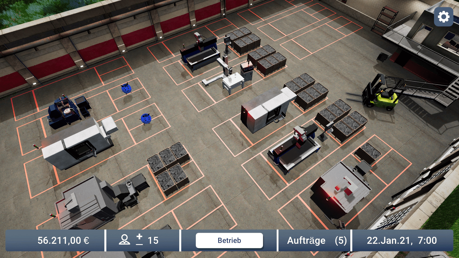 Real-time economic simulator of an up-and-coming company. Earn profits by distributing the orders to the machines as efficiently as possible. Expand the machine park to be able to accept more and more complex orders.