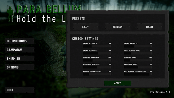 Para Bellum - Hold the Line is a 3D real time small unit tactics game. Your task is to hold off enemy attacks wave after wave using a variety of different Units and Supports in your arsenal to the best of your abilities in Campaign and Skirmish modes.