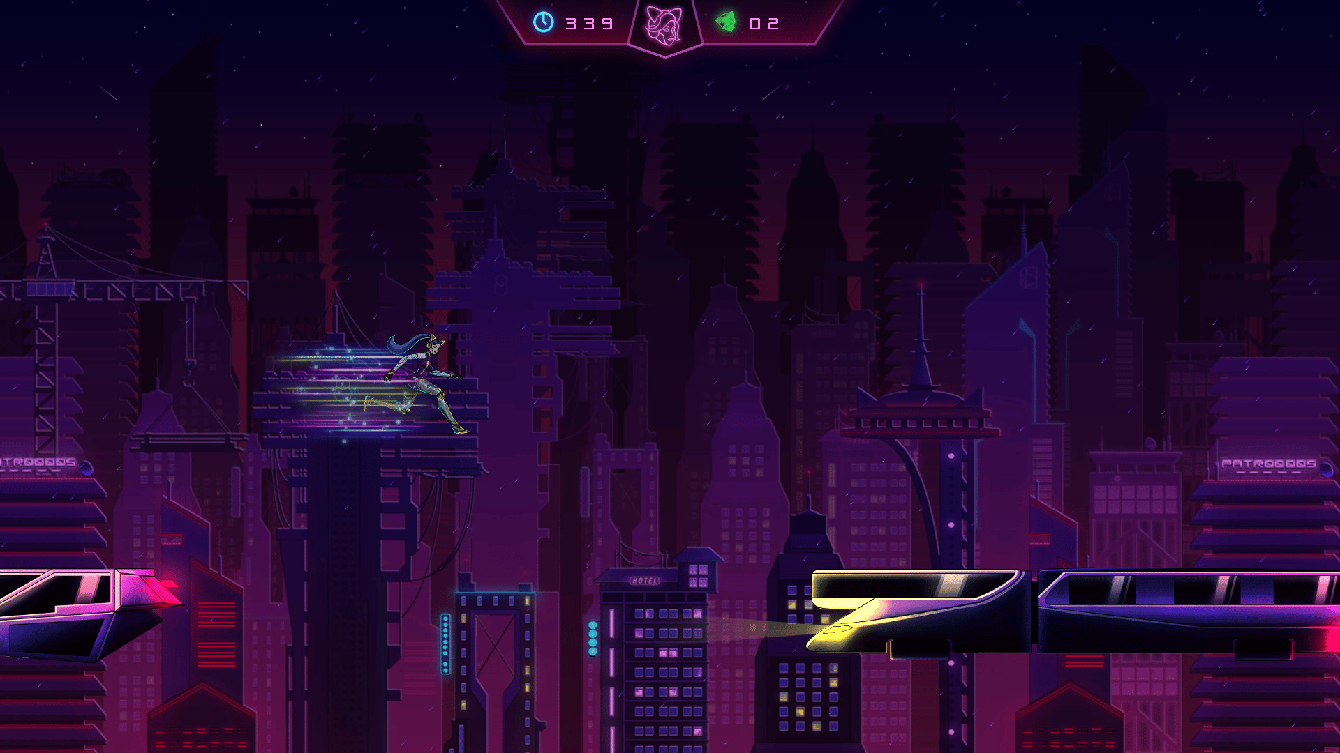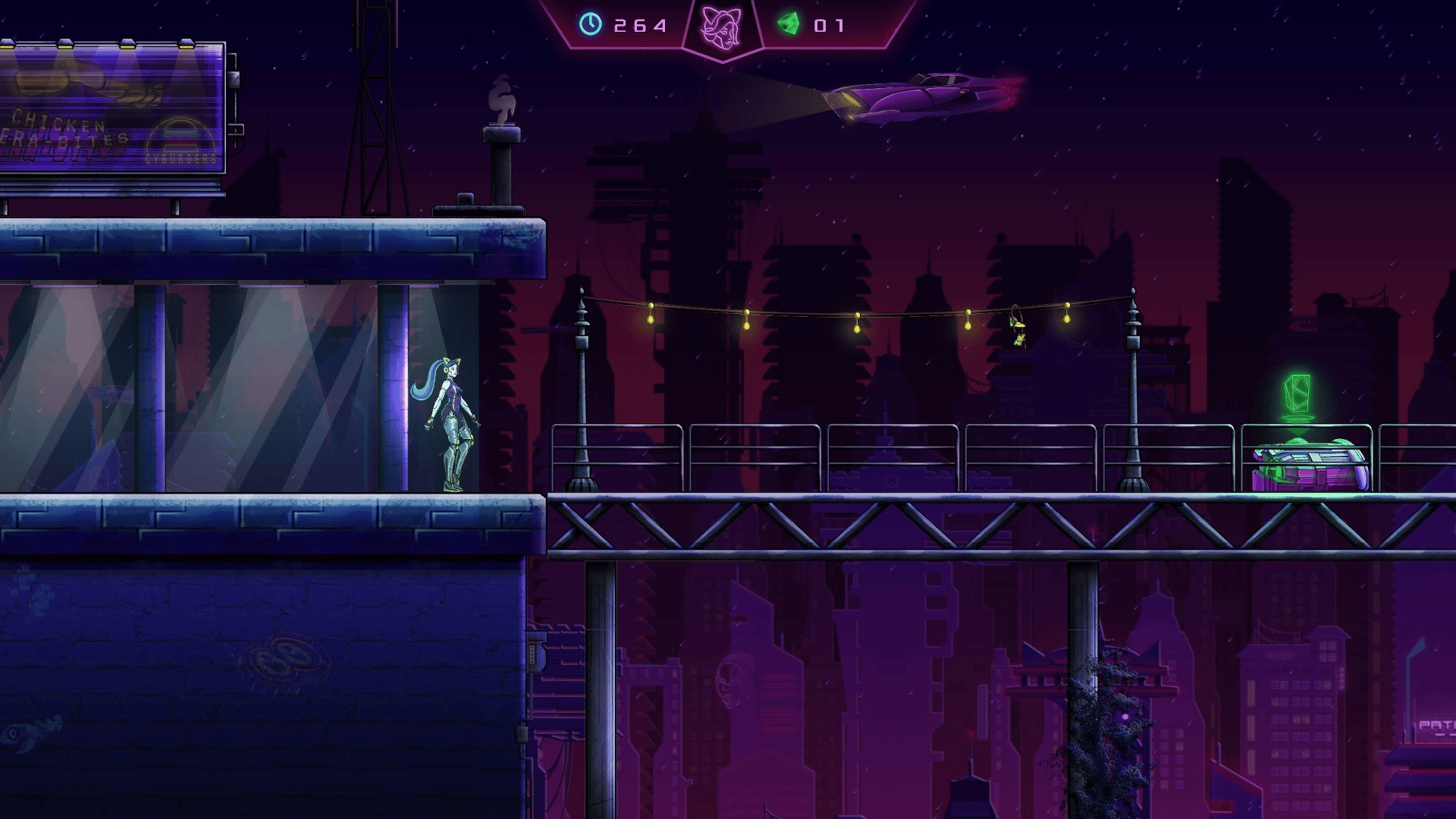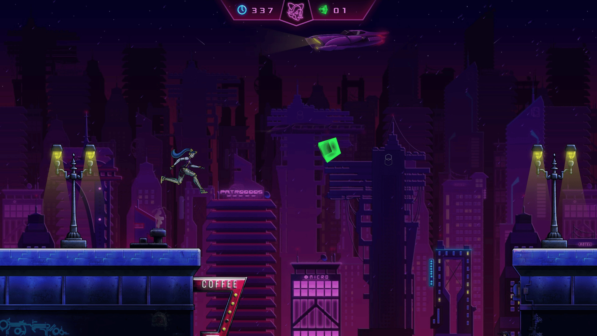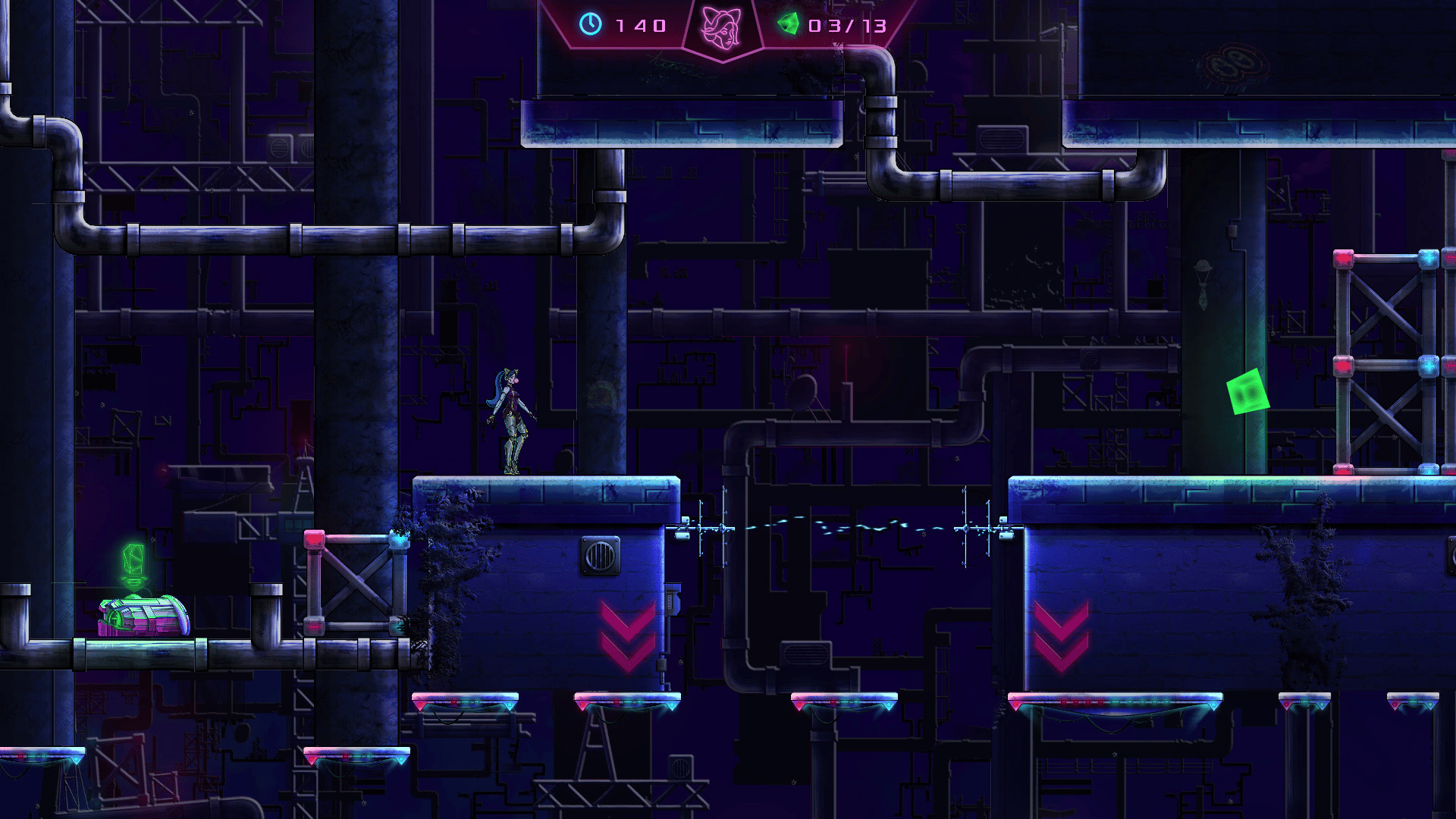 Codename: Tiaras is a fast paced cyberpunk game focused on player movement and reaction time to overcome obstacles and collect data cubes.