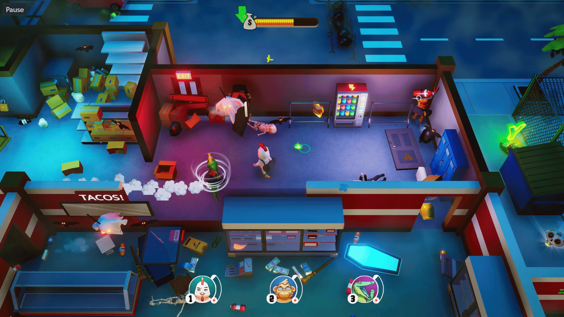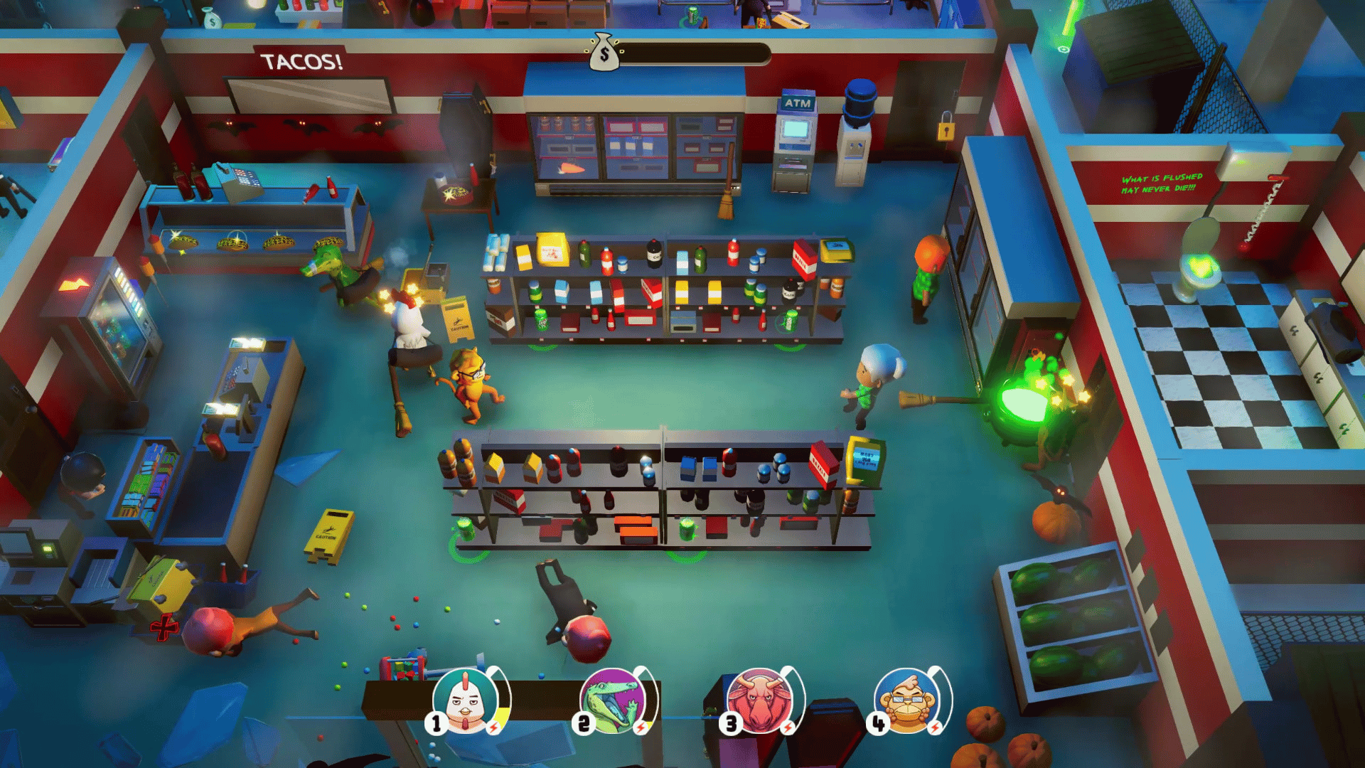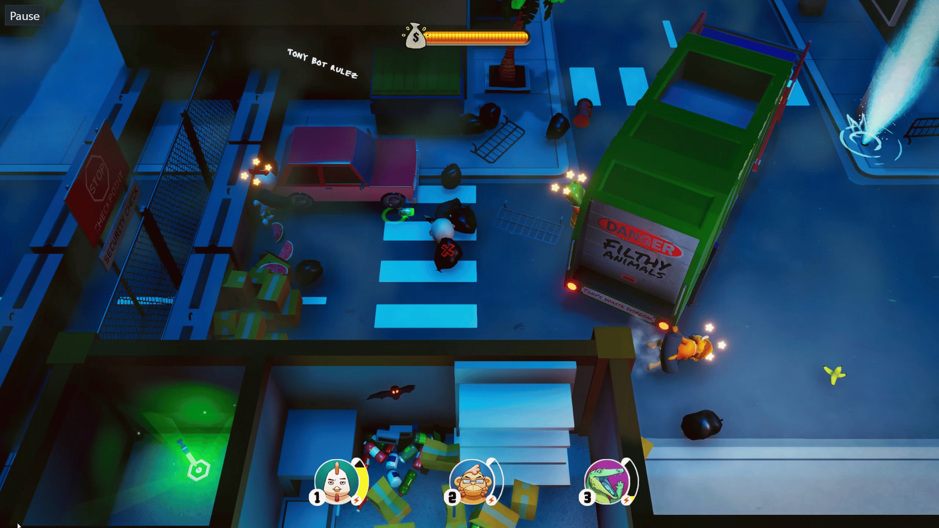 Welcome to Filthy Animals | Halloween Heist - a game about mutant animals who clumsily pull off heists for Tony, a mad scientist/getaway driver.