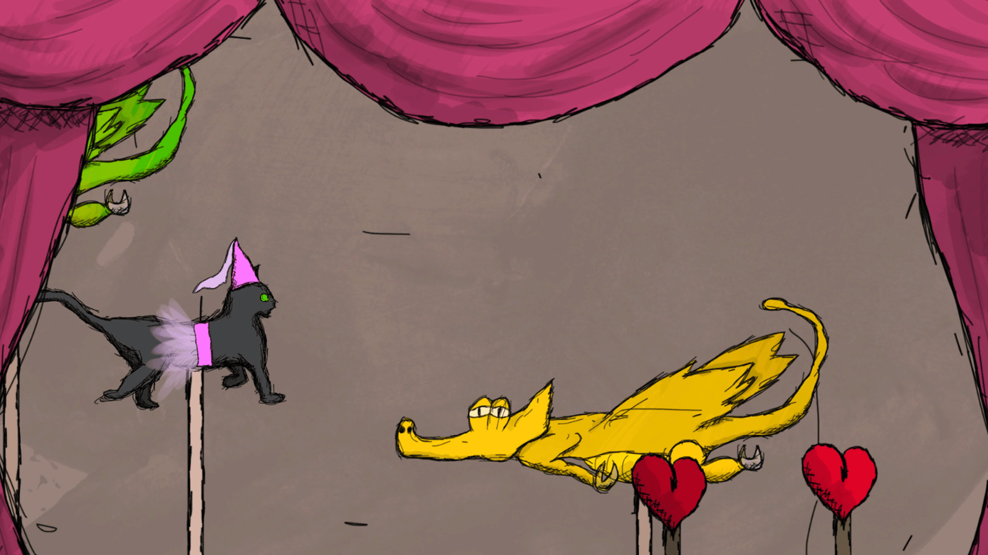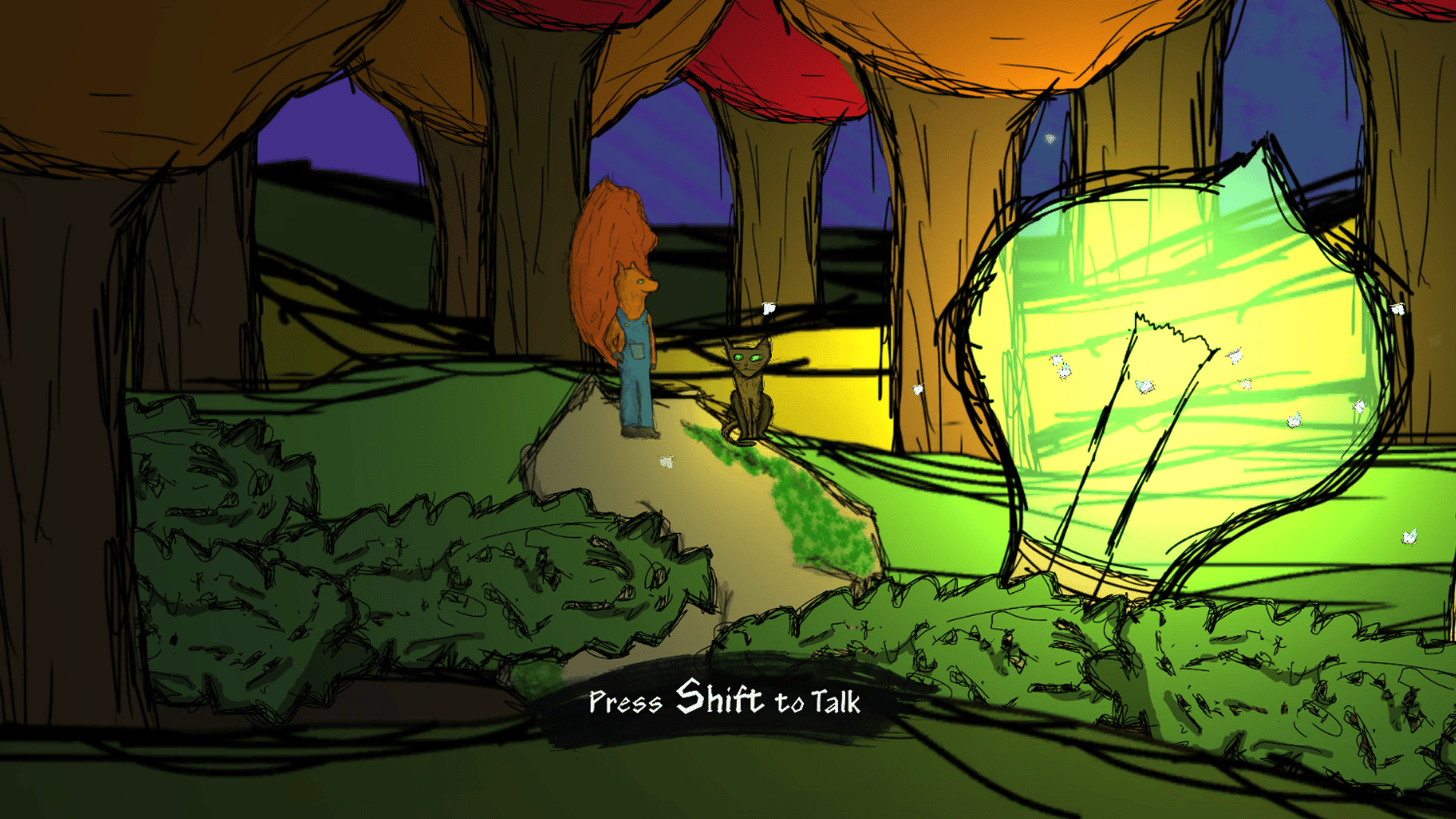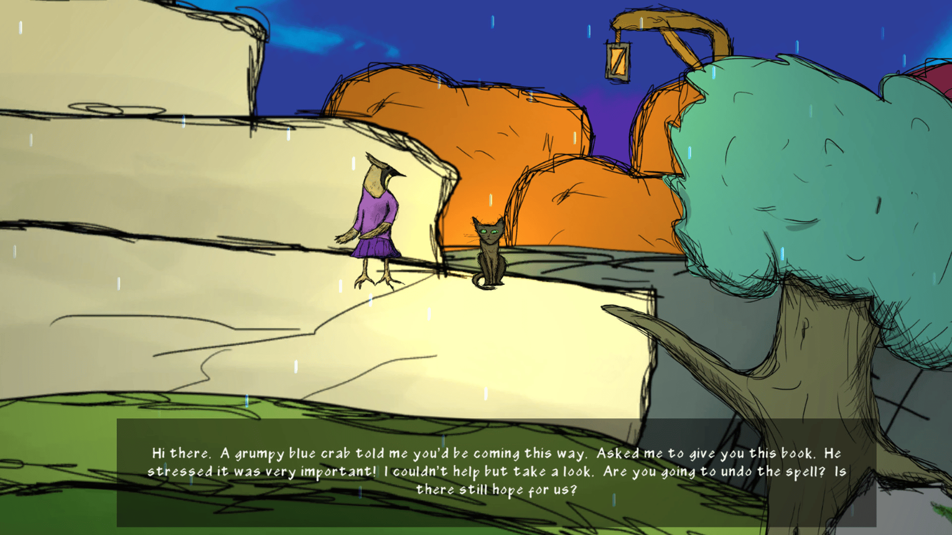 Familiar is an illustrated puzzle misadventure from Damsel Stone, following a witch's cat trying to undo a spell gone-wrong. Use a combination of platforming, problem solving, potion drinking, and people pleasing to undo the ongoing disaster and bring familiarity back to your home.
