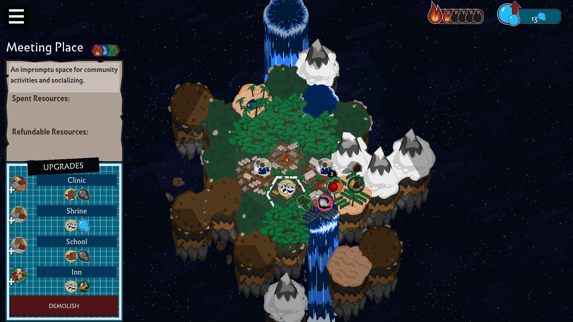 Firekeep is a minimalist, relaxing strategy game about building a tiny, sustainable city in the cold void of space. Build, combine and upgrade dozens of unique buildings to overcome procedurally-generated islands and keep your fire burning.