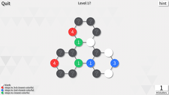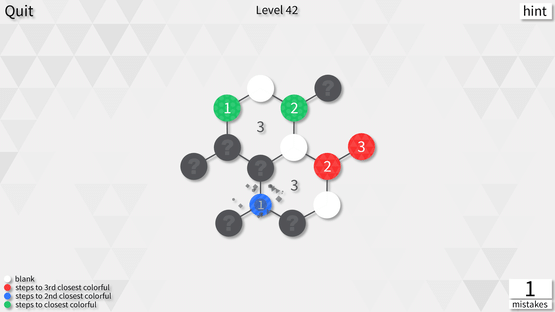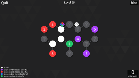 LogiNode is set in a graph of nodes that are either blank or colorful, but most of them are hidden. Your job is to deduce whether the hidden nodes are blank or colorful, using the information they give you. If you like complicated Minesweeper-like games that do not require guessing, this is for you!