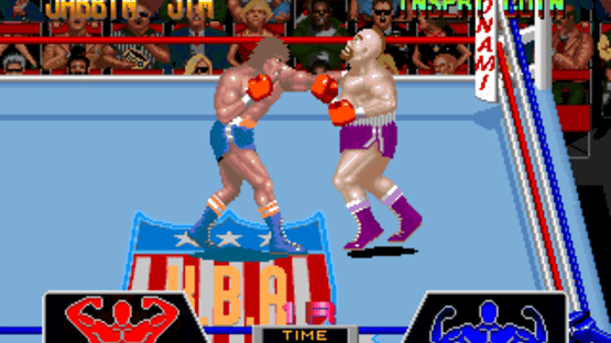 Boxing Game. You play the role of Jabbin Jim who fights his way through different opponnents each tougher than the last. Some of the opponents are recognisable from the Rocky movies. Your boxer has three attributes: strength, speed, and staminia, and these all contribute to his overall power rating. The attributes can be improved by taking part in mini games between the rounds.