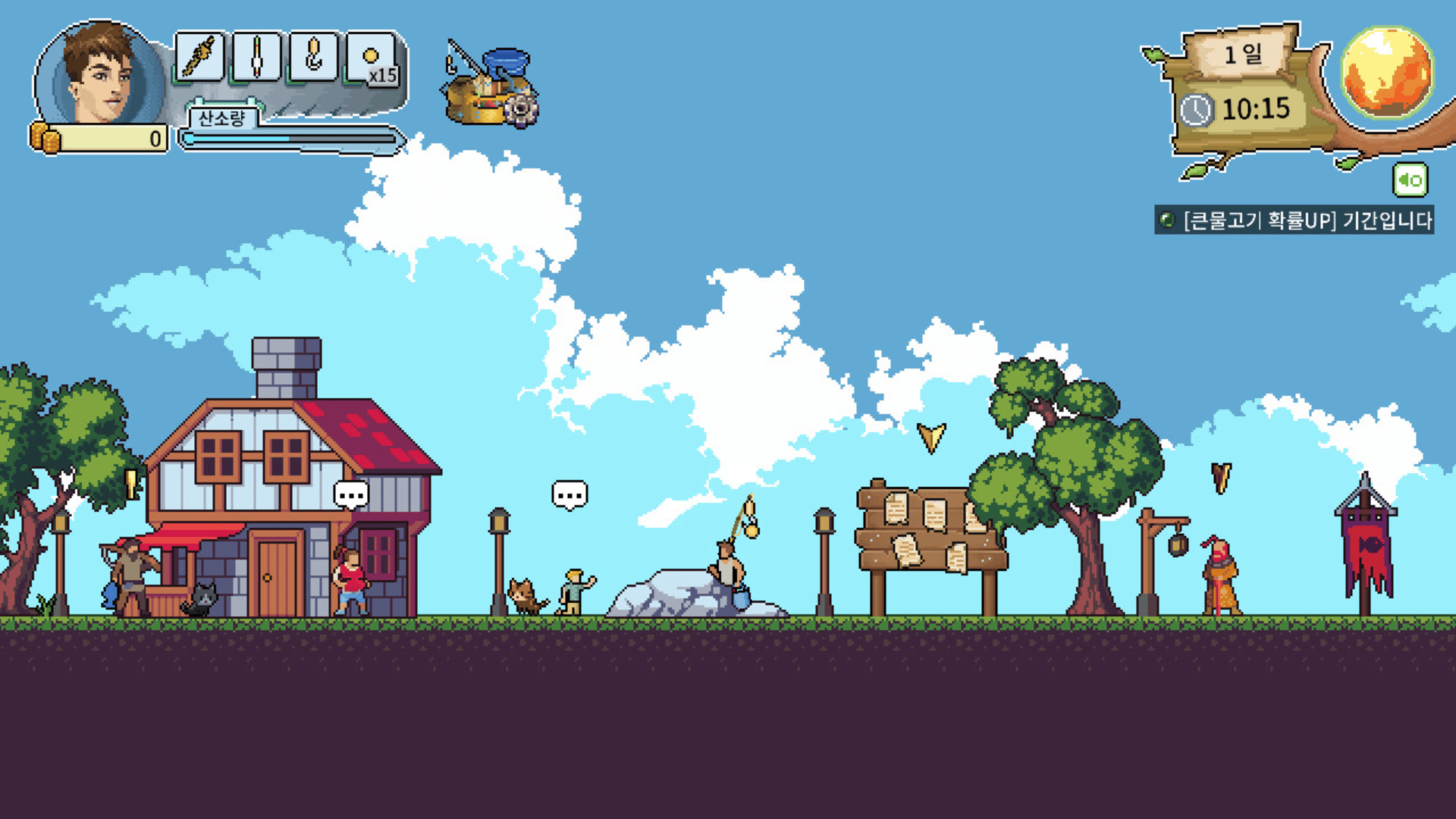 Welcome to Fantasy Fishing Town! Cute pixel graphic x side scroll fishing. It's a unique pleasure! Legendary fish! You're mine!