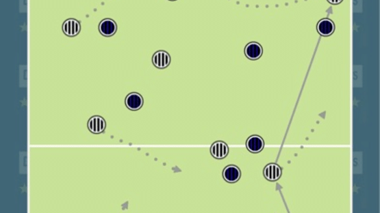 The Football Playbook is a collection of tactical puzzles. In each puzzle you are presented with a snapshot of a football match. To successfully complete the puzzle you must score a goal. Use a combination of timing, movement and key passes to get your players into a scoring position.