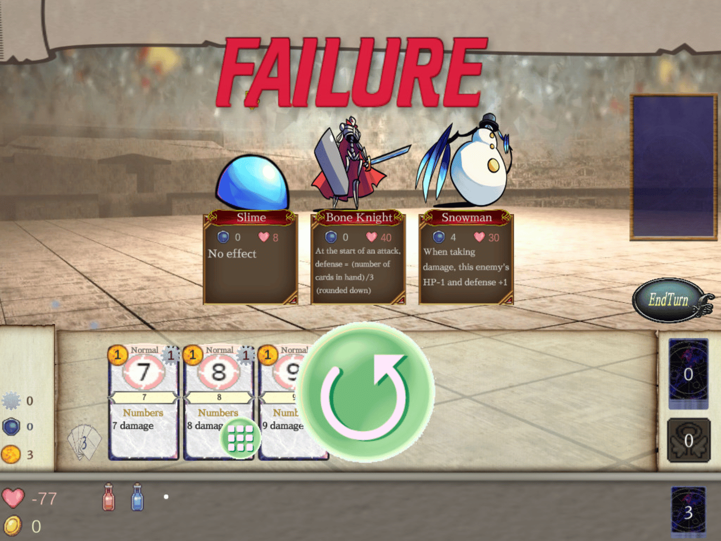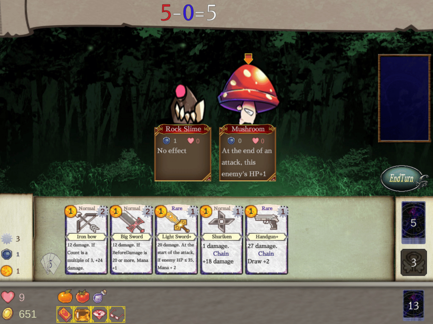 Deck-building roguelike Use cards to reduce the enemy's HP to just 0. This is an easy battle because all battles are over in one turn.