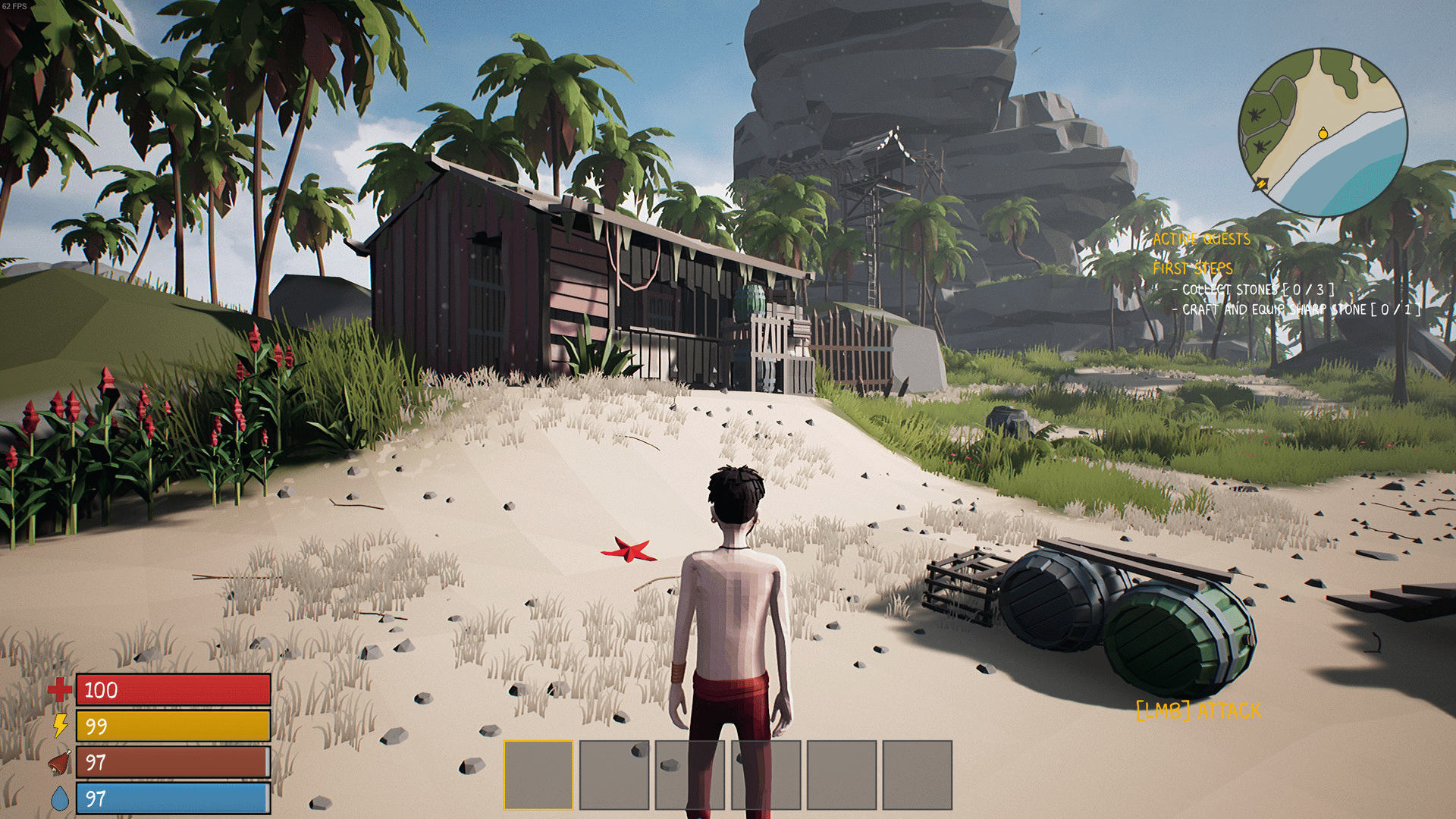 You are a pirate on an island, survive alone or with other players and fight against enemy skeletons. Build a shelter and go collect resources to ensure your survival.