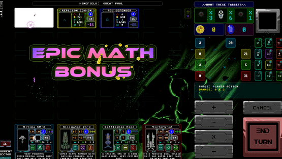Star Math is a sci-fi turn-based strategy game where you use your maths to defeat the enemy! Humanity is fighting a robotic threat from space of its own making! You will fight through a huge 100 area procedural saga map to defeat 9 boss ships, before you can fight the mainframe in the final battle!