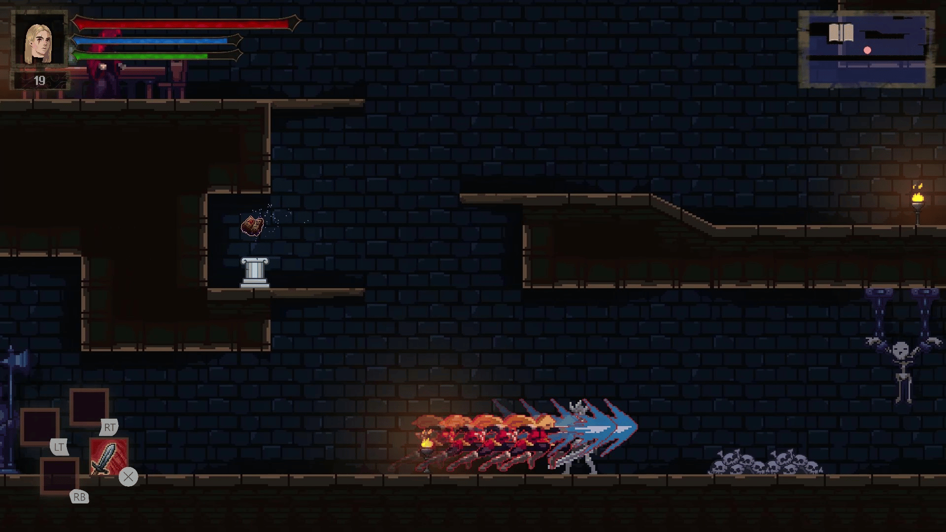 Dark Swords: Fire link is a 2D metroidvania game with a large locations to explore, fight with a lot creatures and epic bosses, and greats skills and power-ups to acquire. Have some of the better features that defines the 8/16-bits era, games like Ninja Gaiden, Super Ghost and Ghouls, Megaman, Castlevania and Super Metroid. Also, it gets inspired by the Dark Souls series, Hollow Knight and Blasphemous.