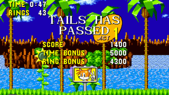 Tails in Sonic 1 is a hack of Sonic the Hedgehog for the Sega Mega Drive/Genesis originally created by drx which featured Tails as a playable character instead of Sonic. Tails can fly, spindash and swim in the same way that he can in Sonic 3.