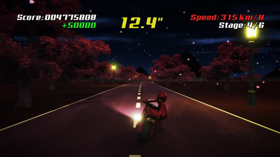 Super Night Riders is a modern arcade racing game inspired by the retro classics. You are Alice, a beautiful and talented motorcyclist known as the Red Rider. In this game, your position in the race does not matter. It's all about traveling as far as possible while dodging the rival riders, and reaching each checkpoint before the timer hits zero. All the races starts during the day and continue through the night right up until sunrise. The game features 2 visual styles: Super and Classic. Ride through 36 beautiful stages in 6 challenging courses!