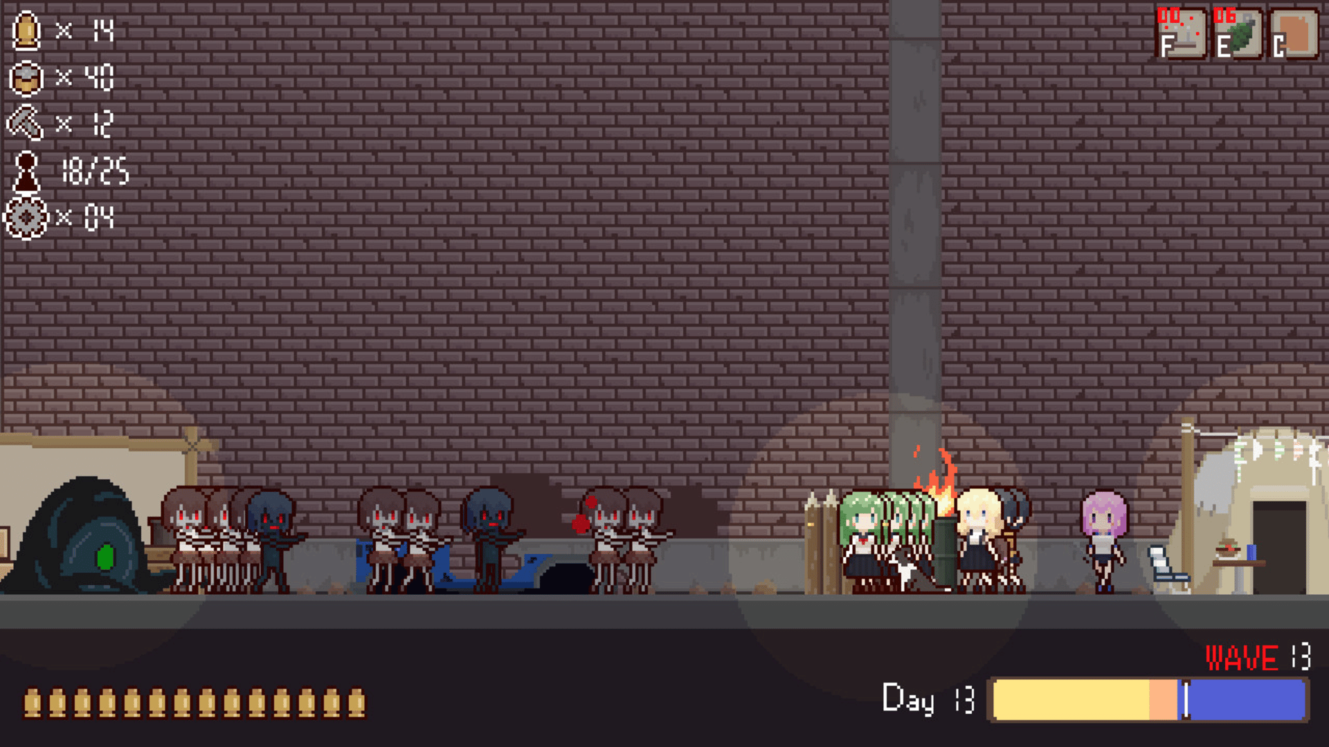 The world was filled with darkness. Gather supplies and people, build a wall, and defend yourself against the emissaries of the underworld! 2Week:DeathWorld is a side-scrolling strategy game drawn in dots.