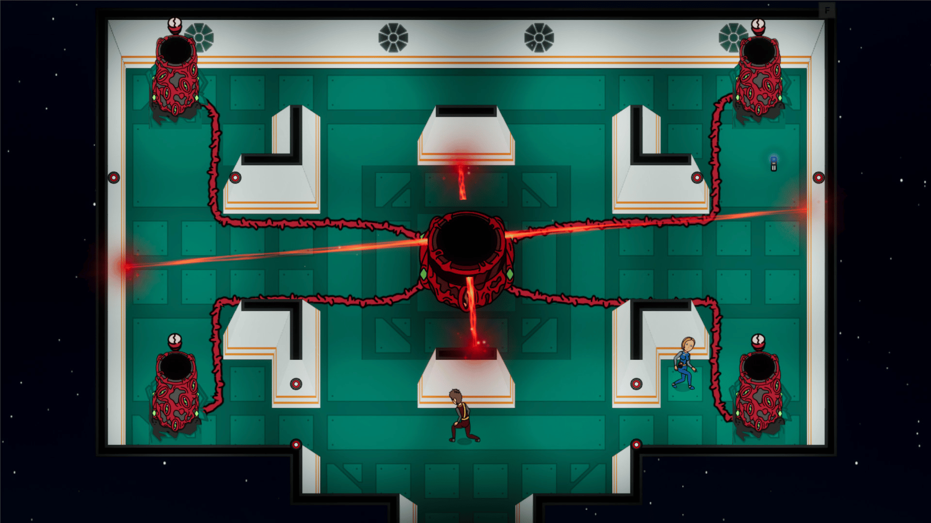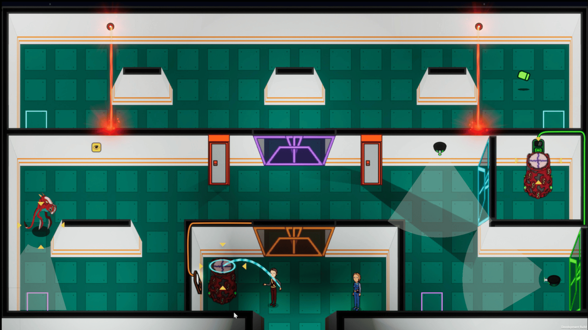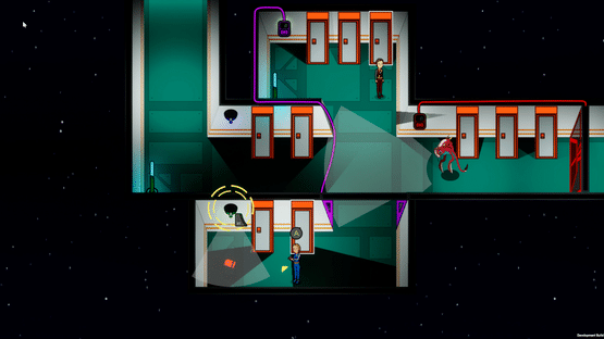 Your ship has been hi-jacked by a clever and aggressive alien space cult. Observe the enemy's behaviour and outwit them using stealth tactics and hi-tech gadgets. Plan your escape with a friend in co-op in this 2D top-down action-stealth game.
