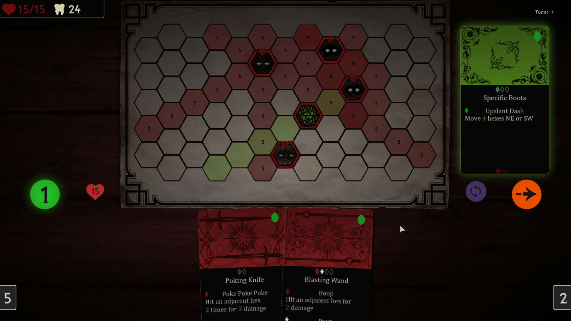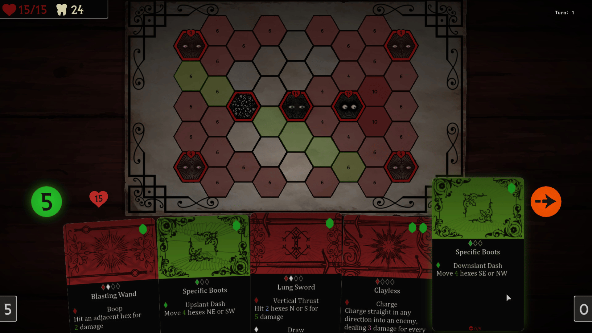 A hex-grid puzzle-tactics card game. Outwit and outlive your enemies, while upgrading your deck. A lightweight game of bite-sized encounters.