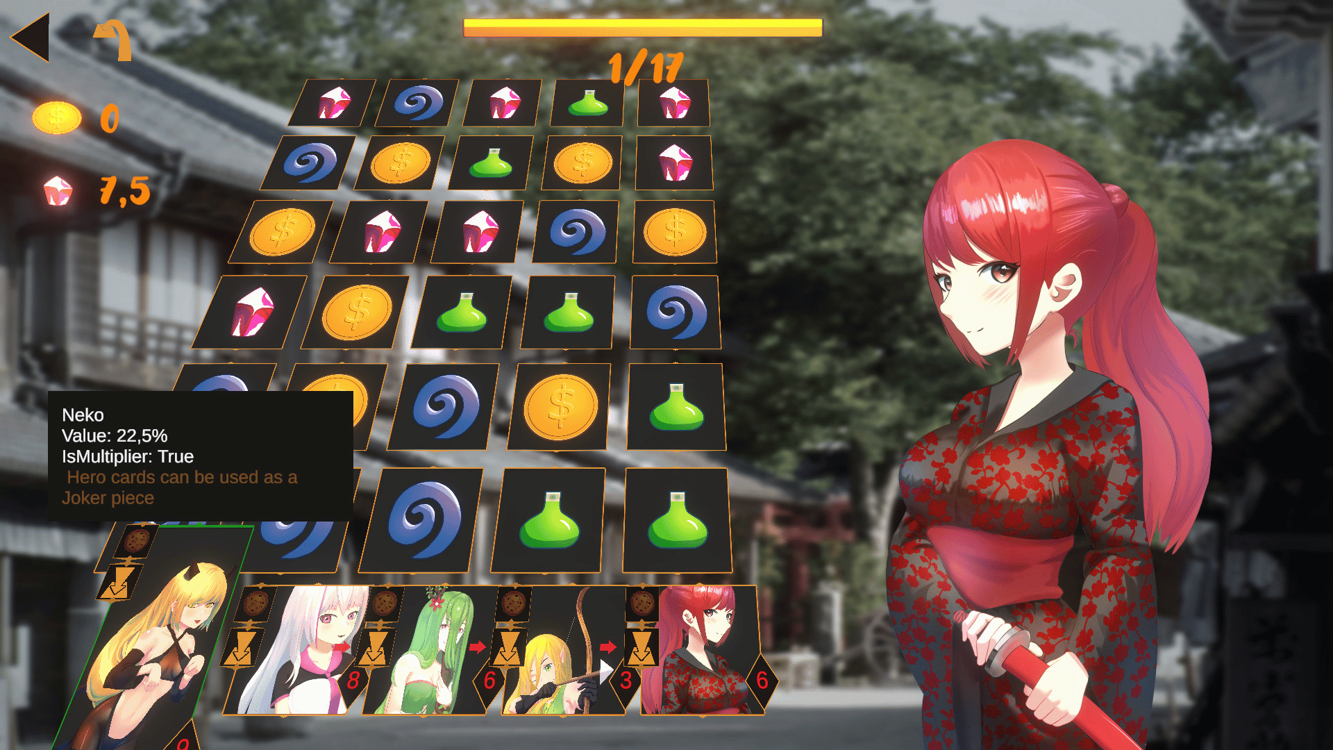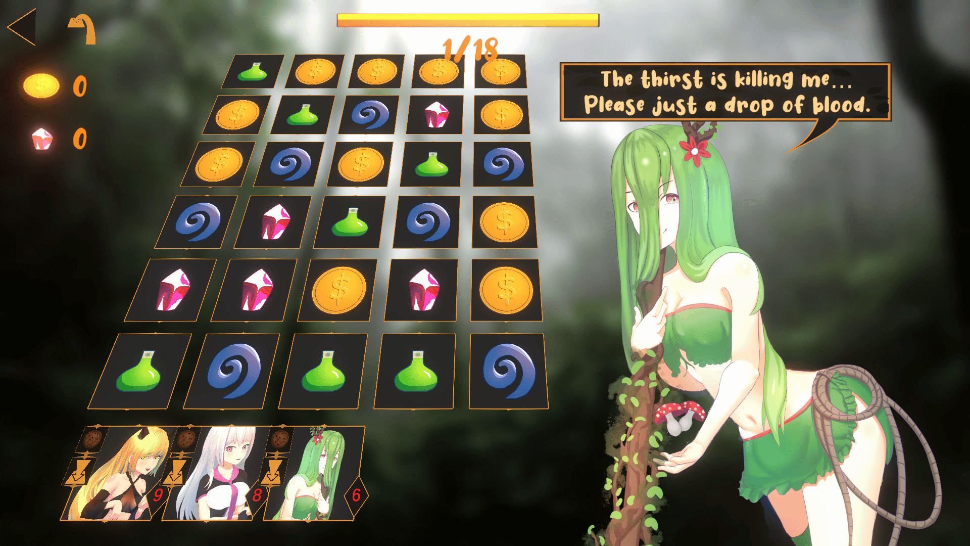 Mire is a combination of match 3, cards, upgrades and galge. Fight characters in a fantasy setting, get stronger and interact with character in nsfw minigame.