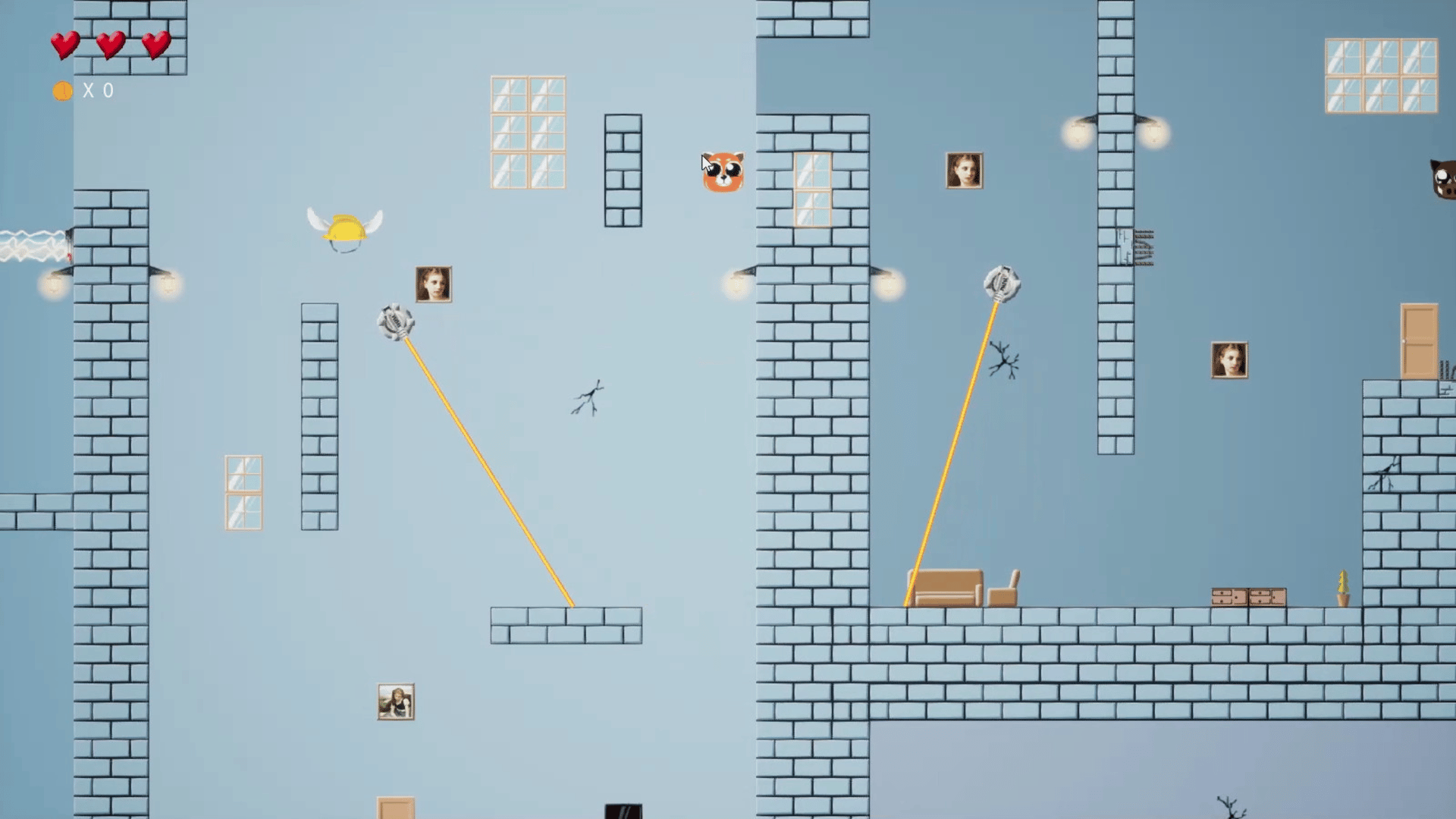 A 2D physics game. In the game,you will control a red panda or cat to defeat cunning greedy enemies, and protect kind animals and beautiful nature, by press release and drap mouse. Press left button of mouse or "P" key to pause game.