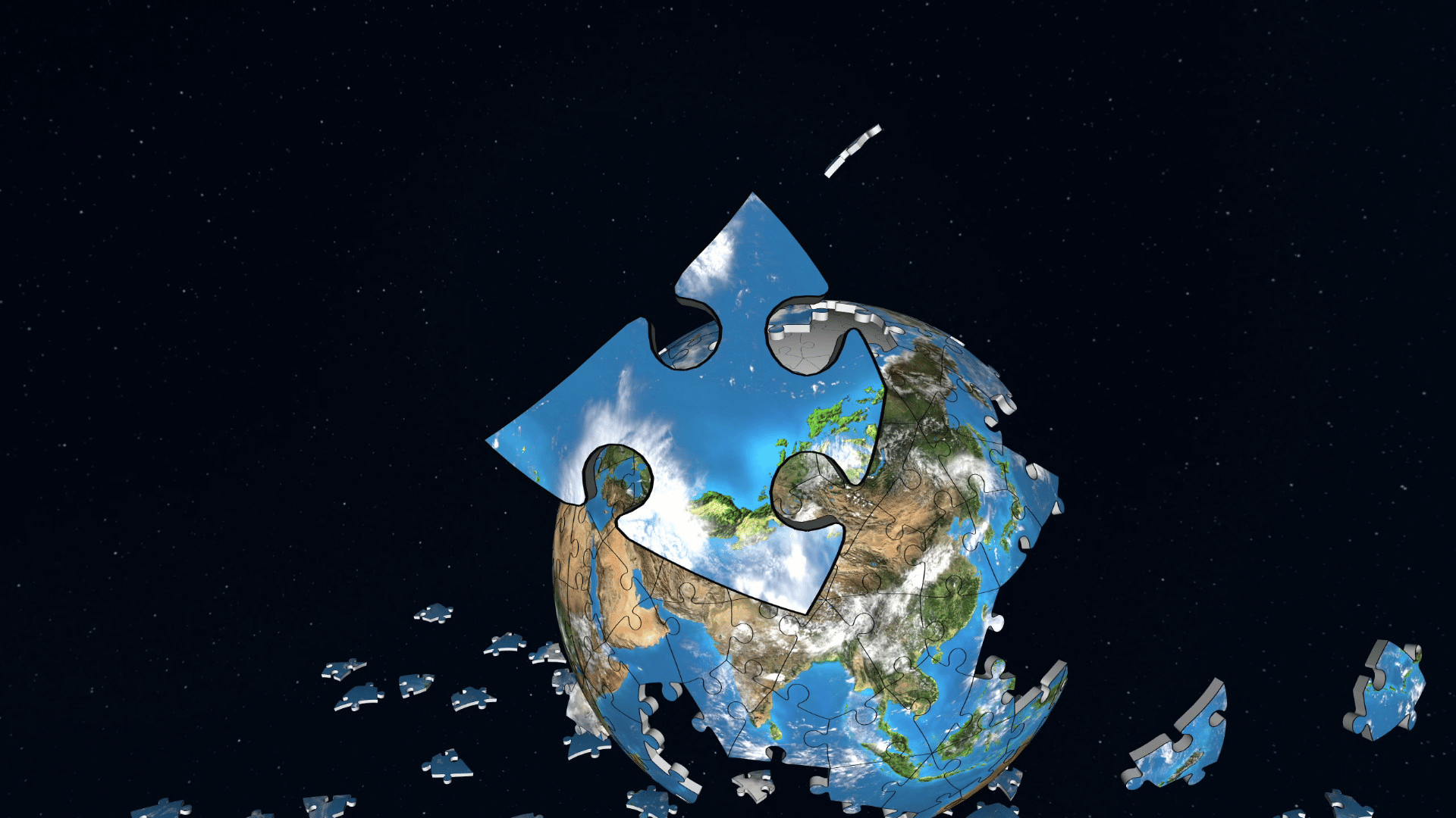 Assemble the planet Earth as a spherical jigsaw puzzle in full 3D and at 3 levels of difficulty.