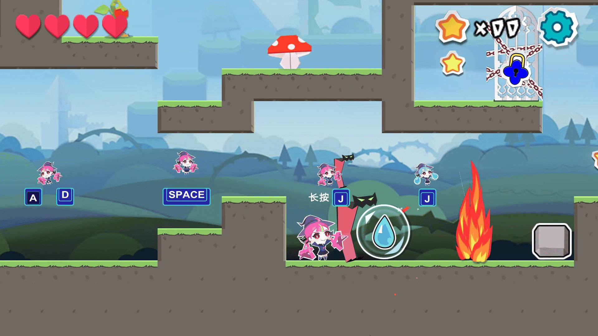 This is the story of an adventurous little witch and her cat in the paper world. The puzzle mainly tests the player's observation of the stage and the application of elements. Use the cat to eat the elements and use them in the right place to open the channel or get new elements.