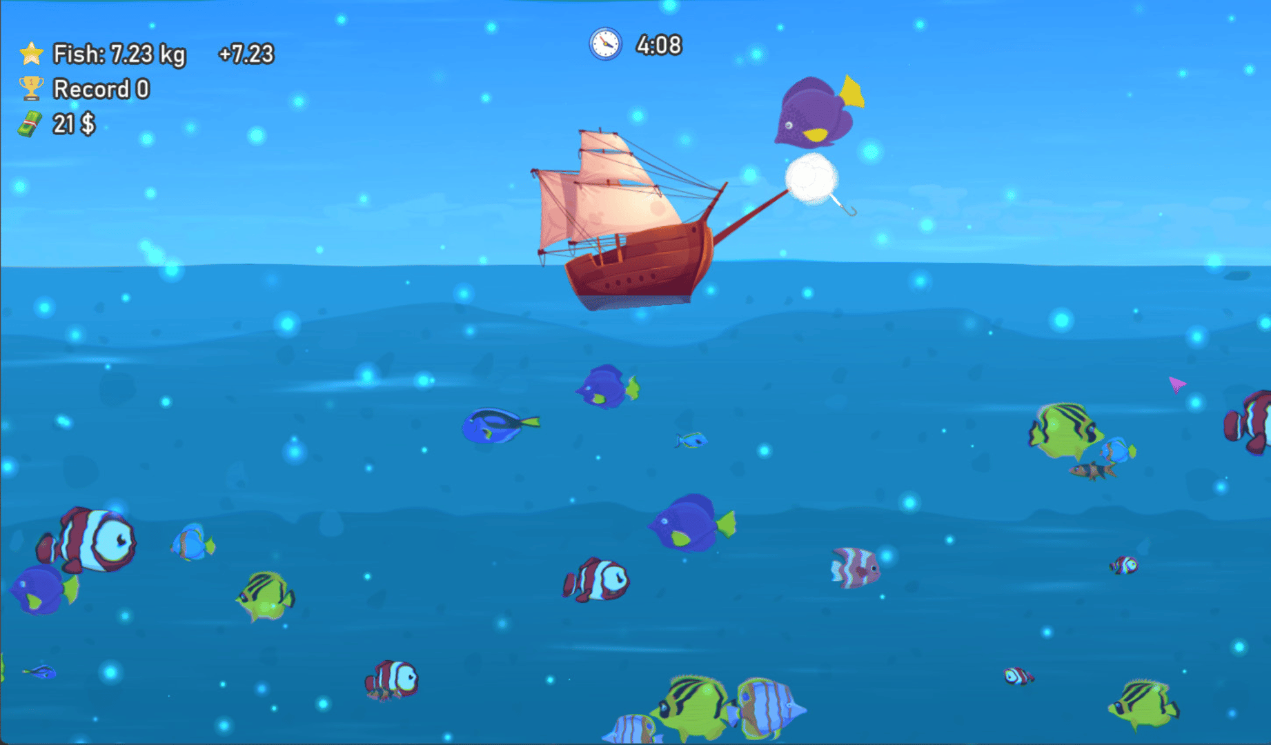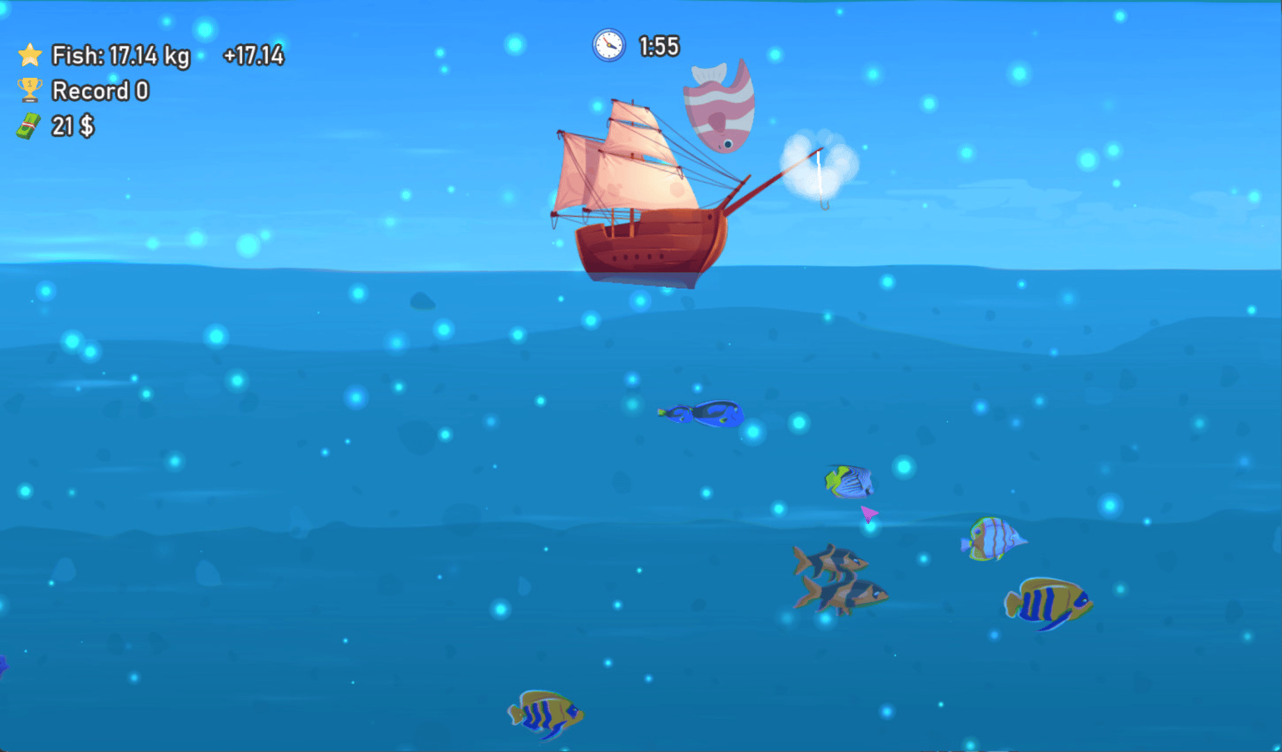 In the exciting game "Pirate Fishing" you play as a fisherman and your task is to catch as many fish as possible to earn a lot of money. Pump up your fishing rod and try to set a record for catching fish every time!
